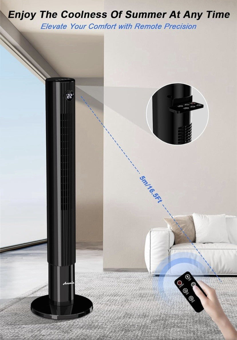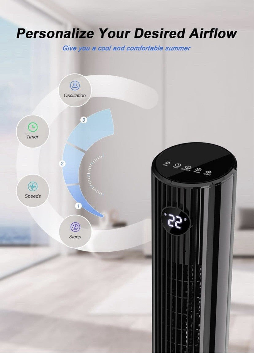 Features Oscillation, Quiet Operation, Remote Control, Timer, Adjustable Speed, LED Display