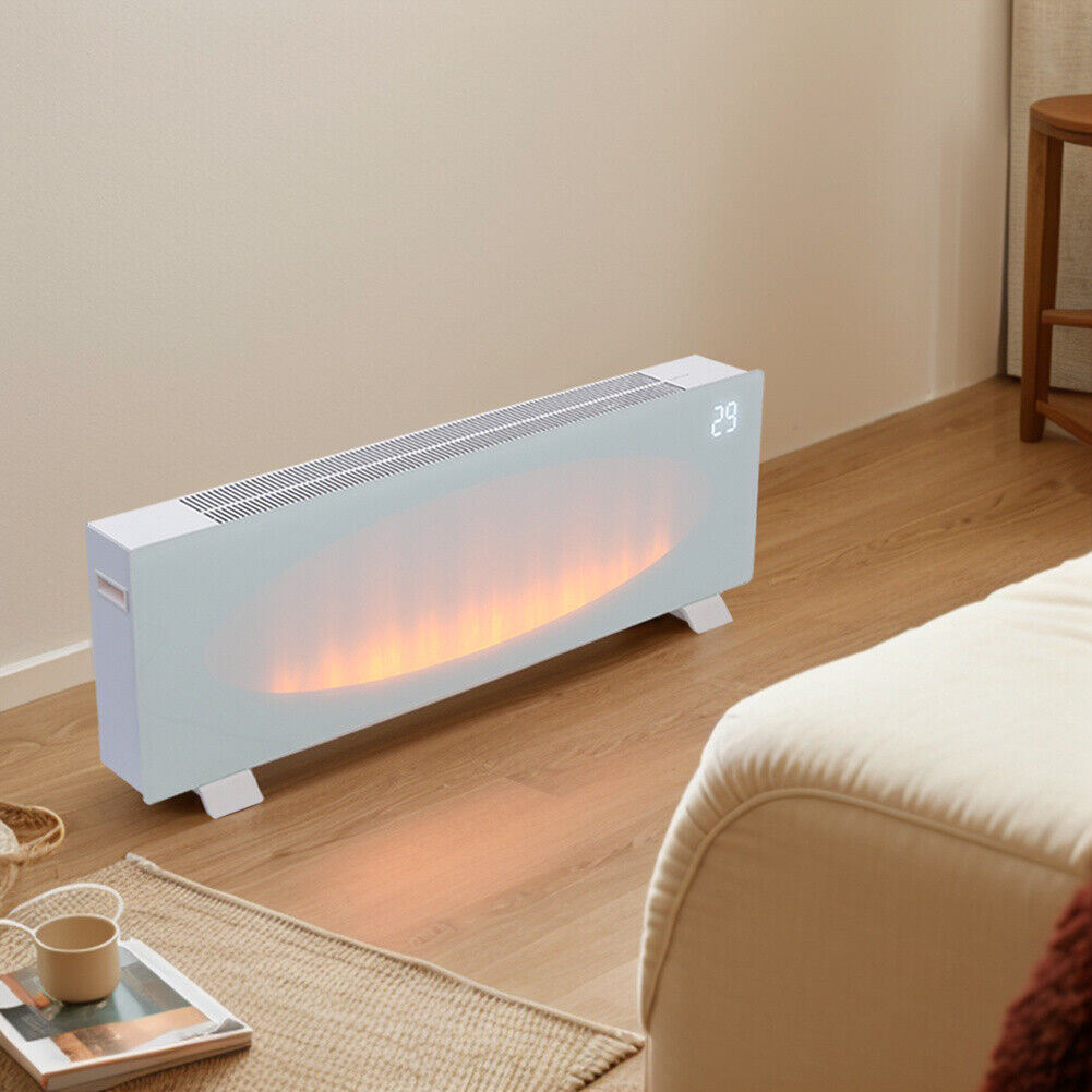 Adjustable Thermostat, LED Flames, On/Off Switch, Remote Control, Timer, LCD Display, Wall Mounted, Freestanding, Glass Panel, WiFi, 7 Colour