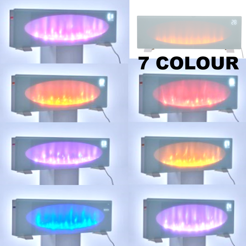 Features Adjustable Thermostat, LED Flames, On/Off Switch, Remote Control, Timer, LCD Display, Wall Mounted, Freestanding, Glass Panel, WiFi, 7 Colour