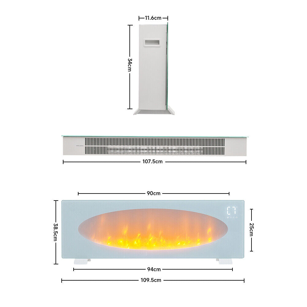 43inch White Freestand Wall Mounted Electric Fireplace Heater LED 7 Colour Fire
