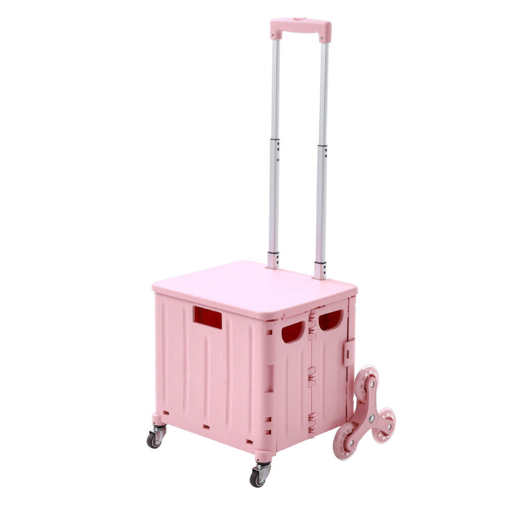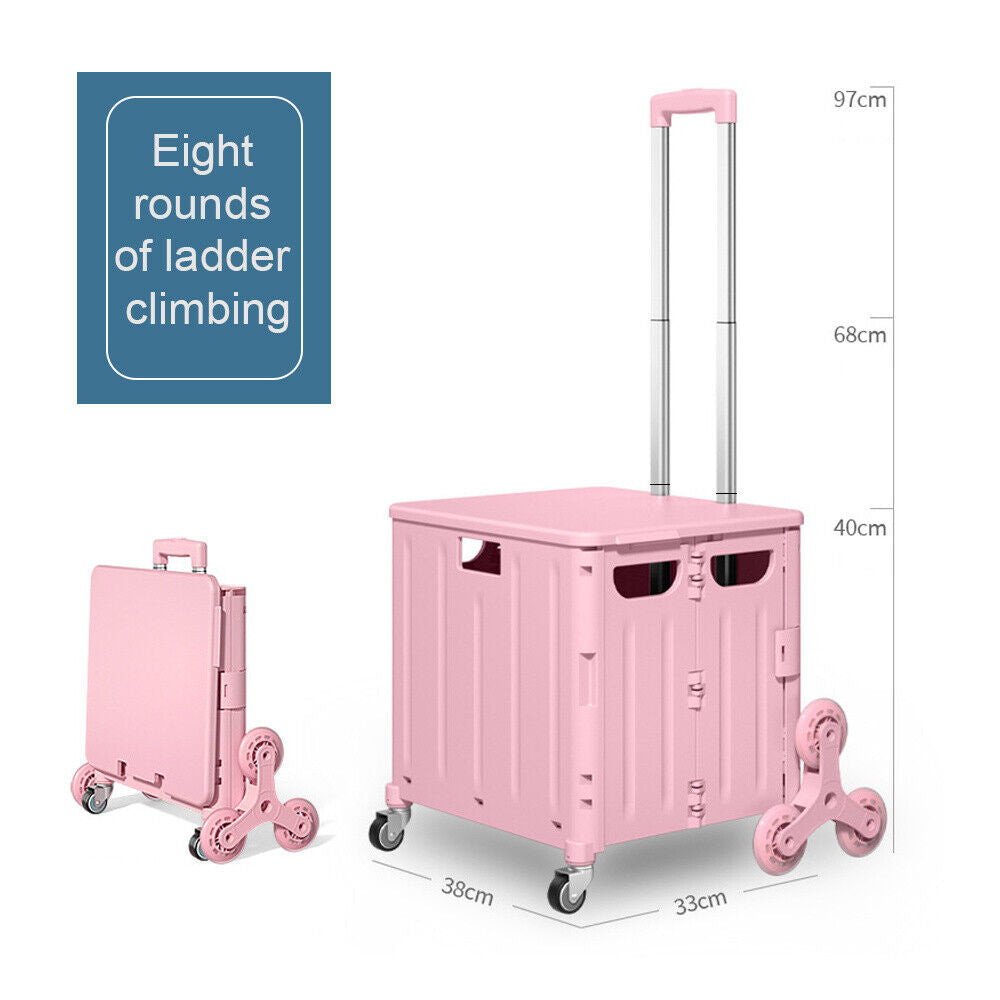 45L Folding Shopping Trolley Grocery Cart Crate Box Wheeled Boot Cart Portable