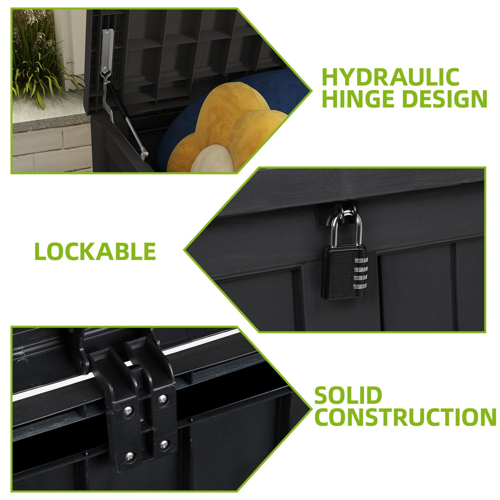 460L Garden Storage Box, Waterproof Resin Deck Box, Lockable Outdoor Container