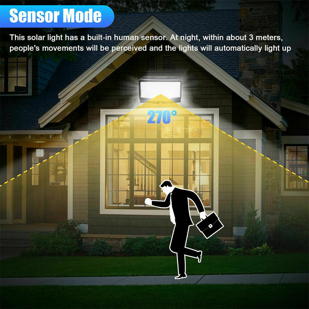468LED Solar Powered Wall Security Lights PIR Motion Sensor Garden Outdoor Lamp