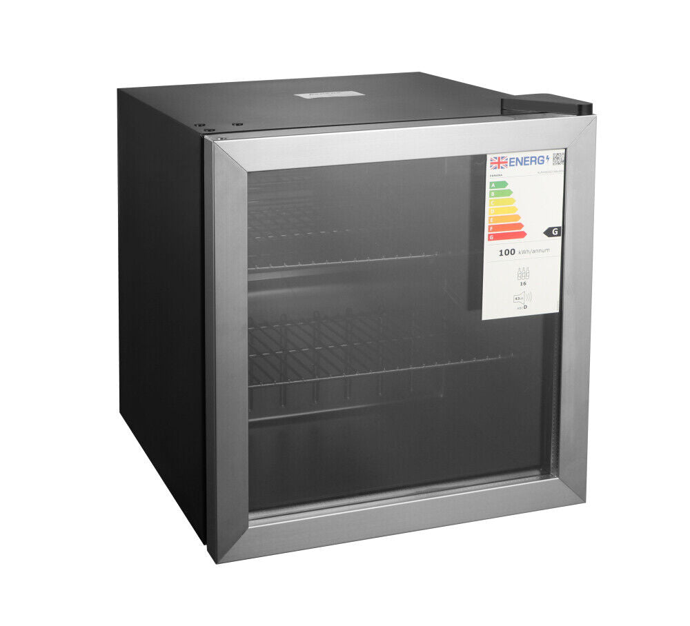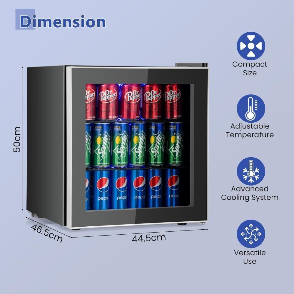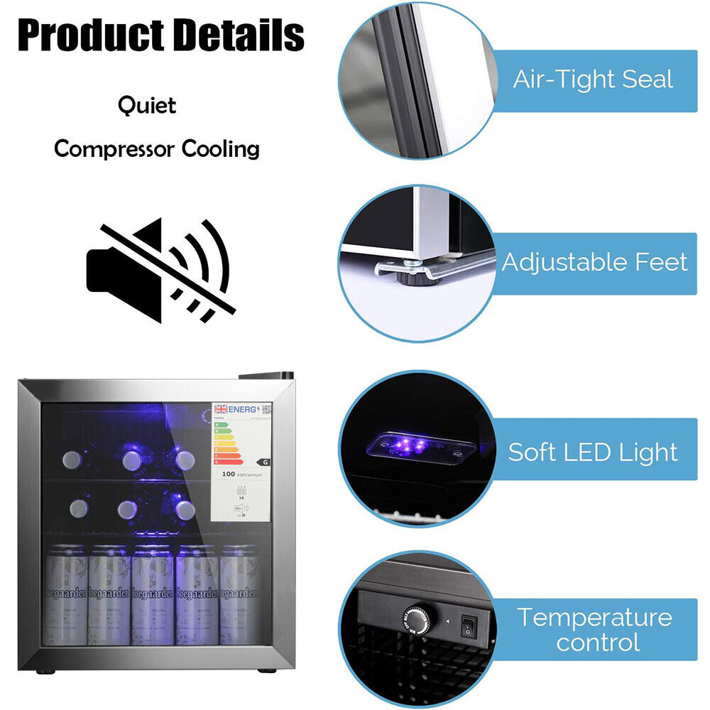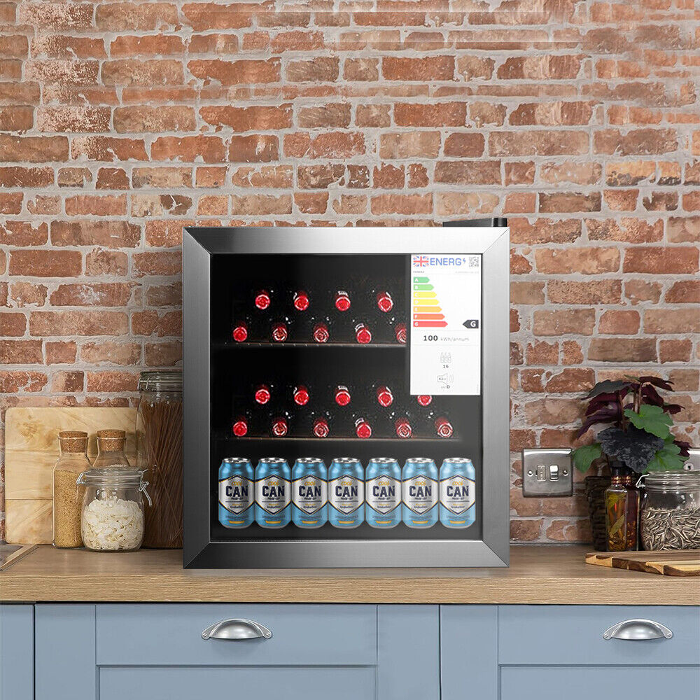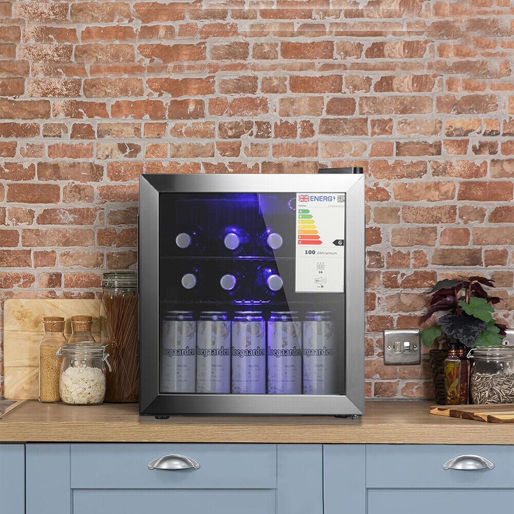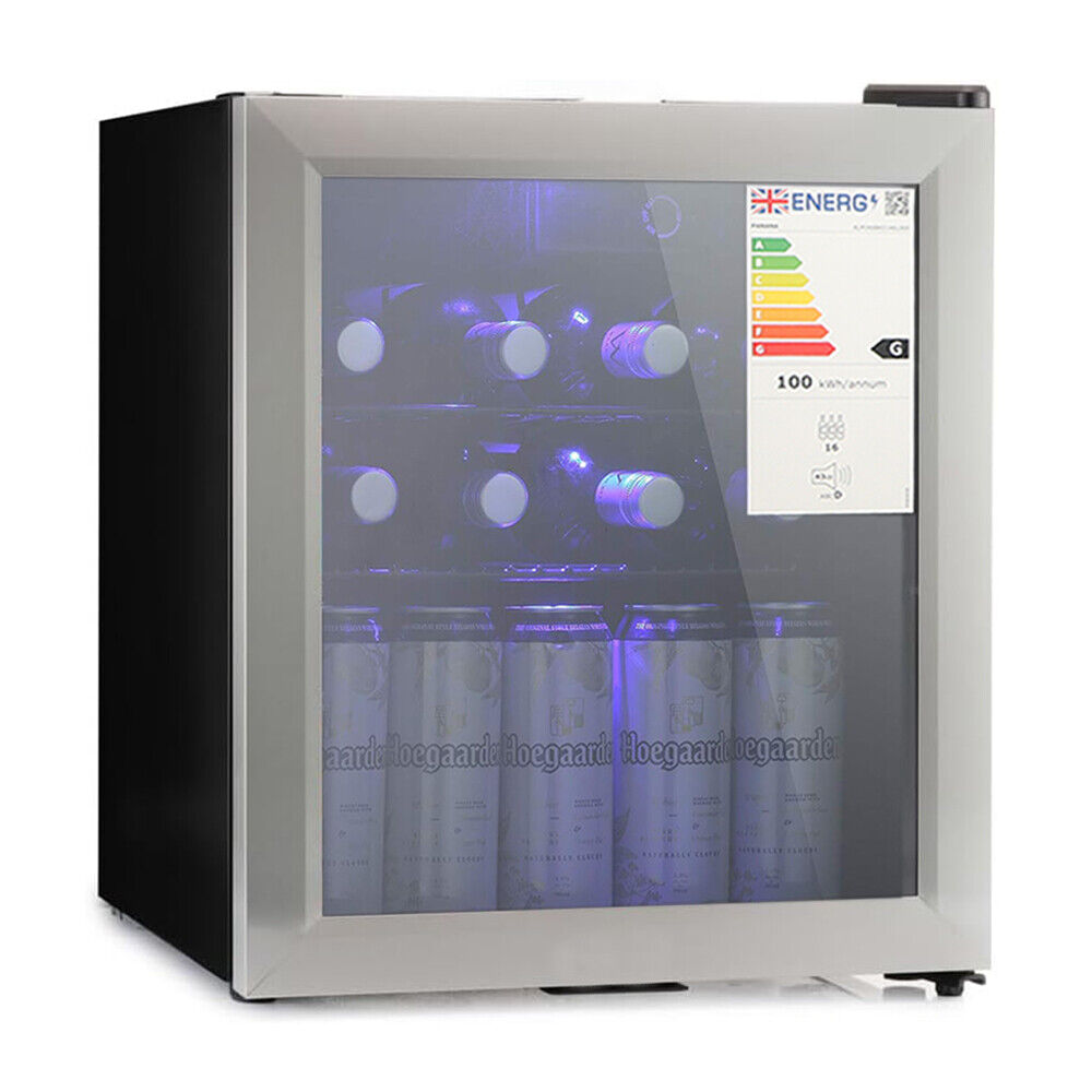 46L Drinks Cooler Fridge Glass Door Compact Counter Top Beer Wine Chiller