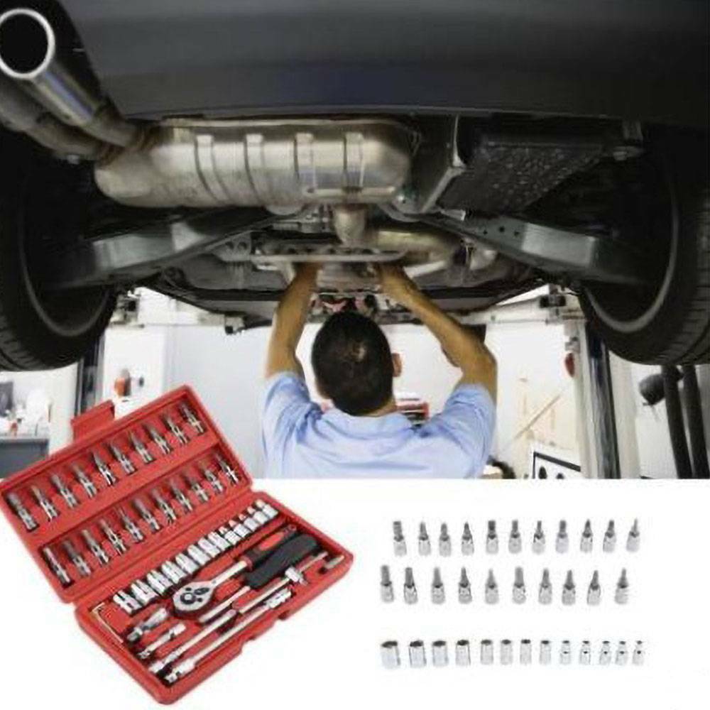 46Pcs 1/4" Screwdriver Drive Socket Set Tool Ratchet Bit Torx Hex Screw