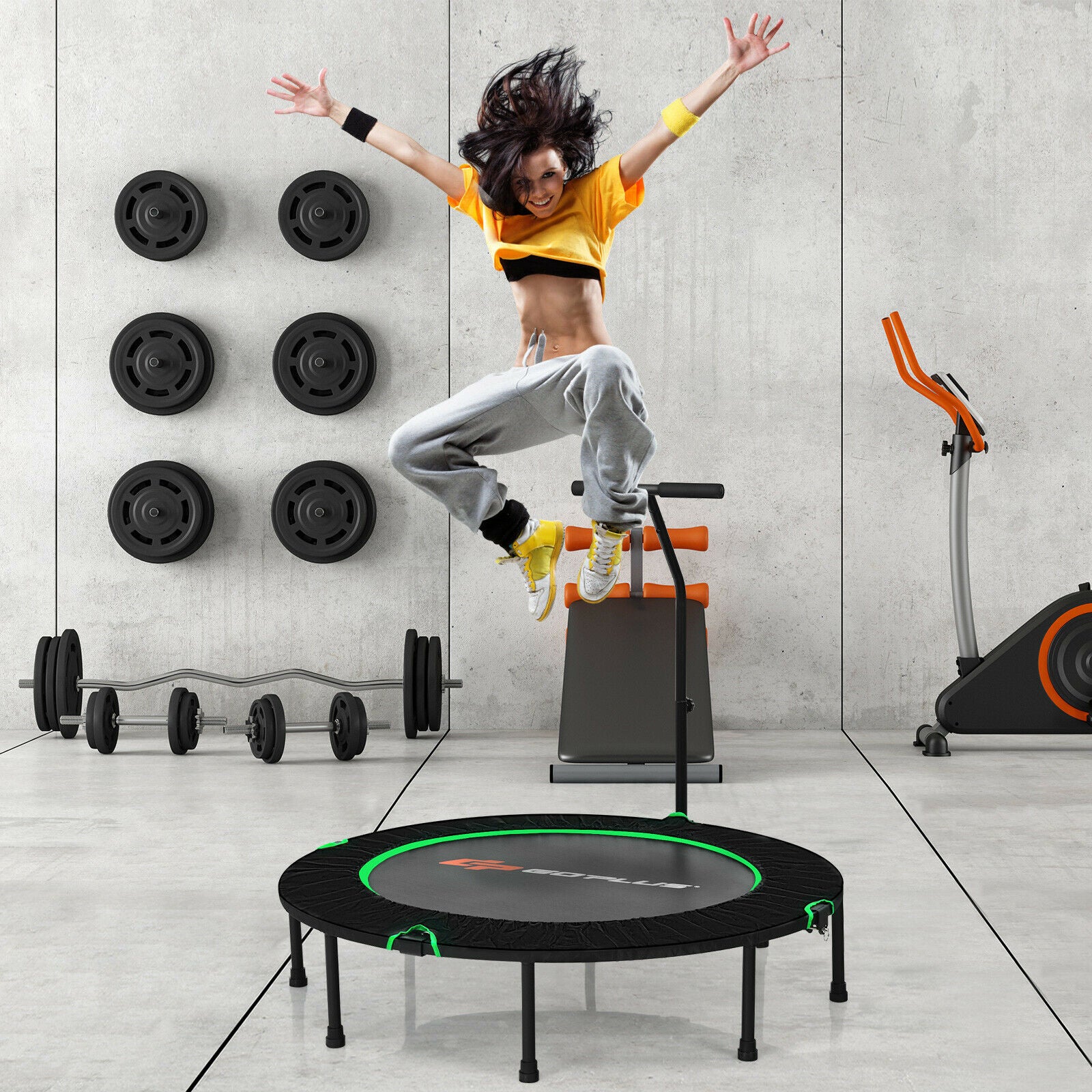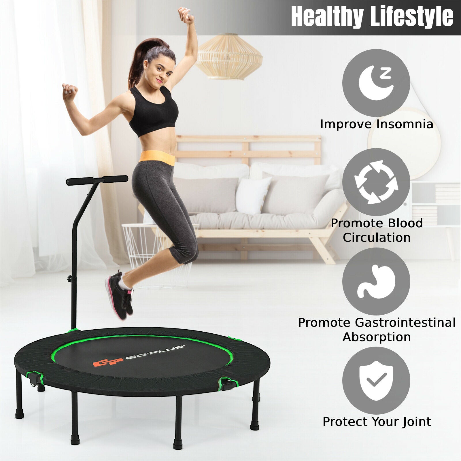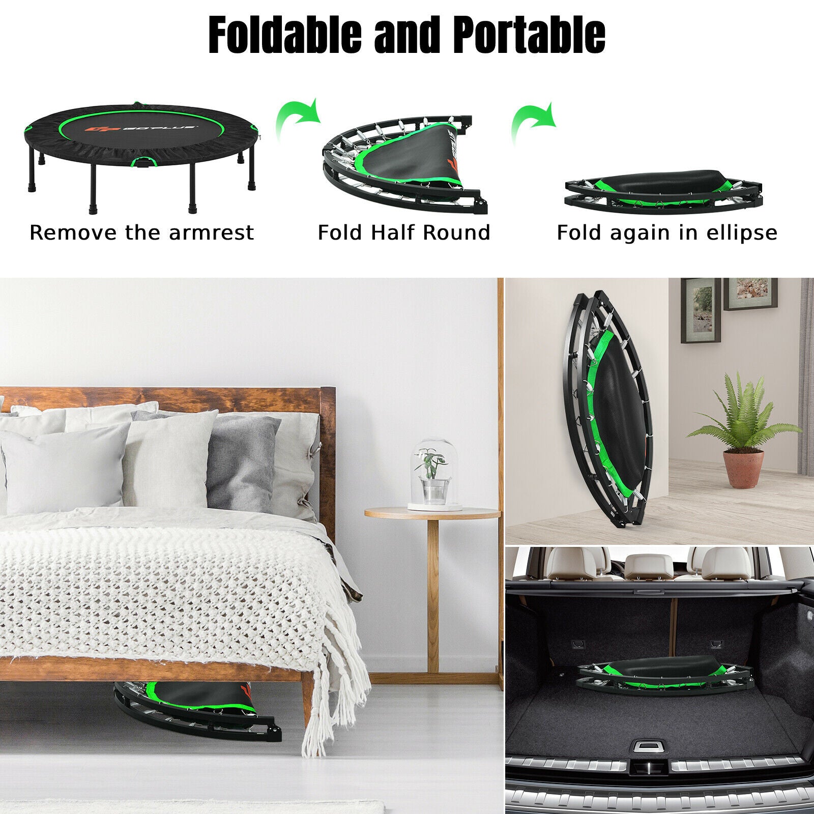 47'' Folding Trampoline Exercise Bouncer W/ Adjustable T-Shaped Handrail