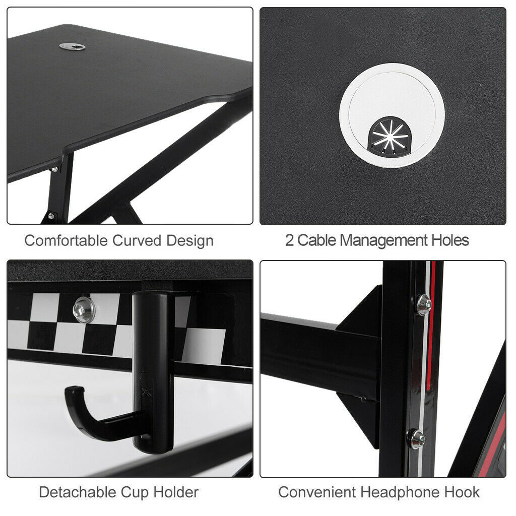 47" Gaming Desk Computer Table Z Shaped Racing Style PC Home Study Writing Table