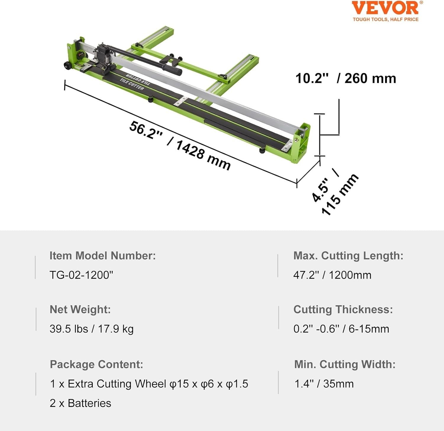 Max. Cutting Length 47`` / 1200 mm