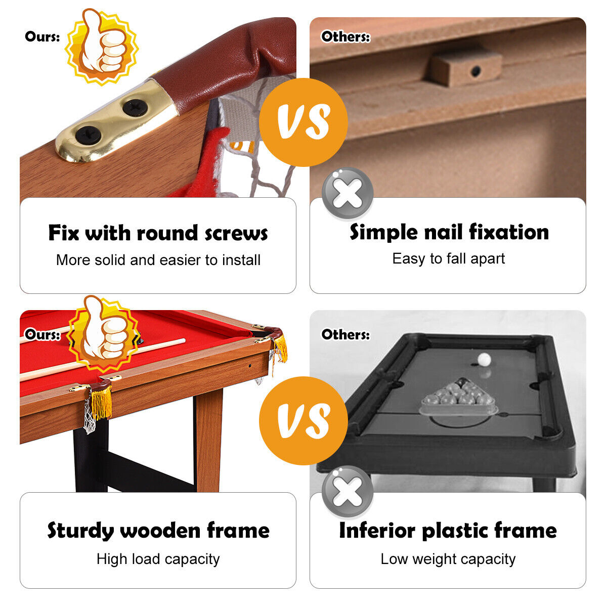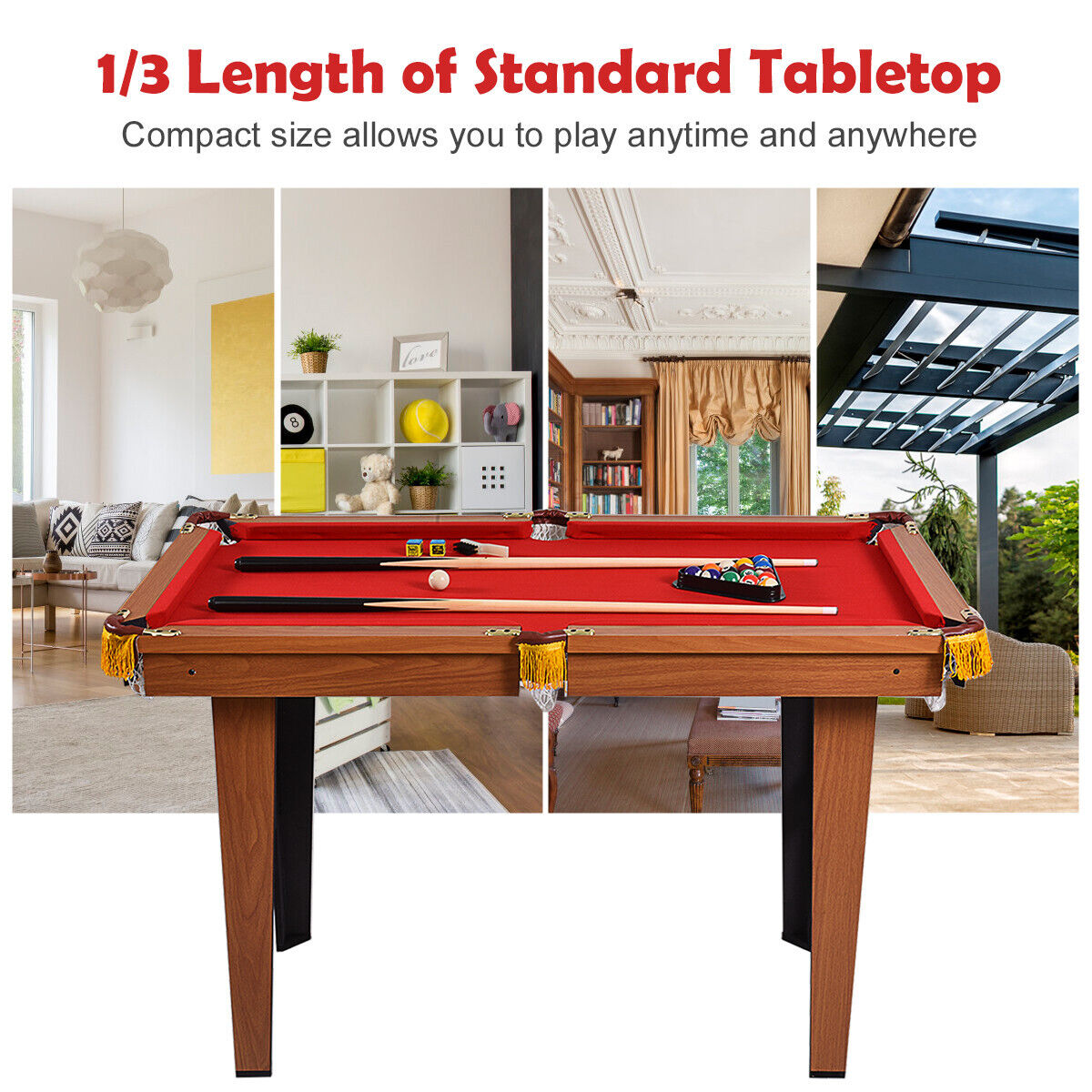 48" Pool Table Billiards Table Mini Snooker Game Set w/ Triangle Rack & Cues