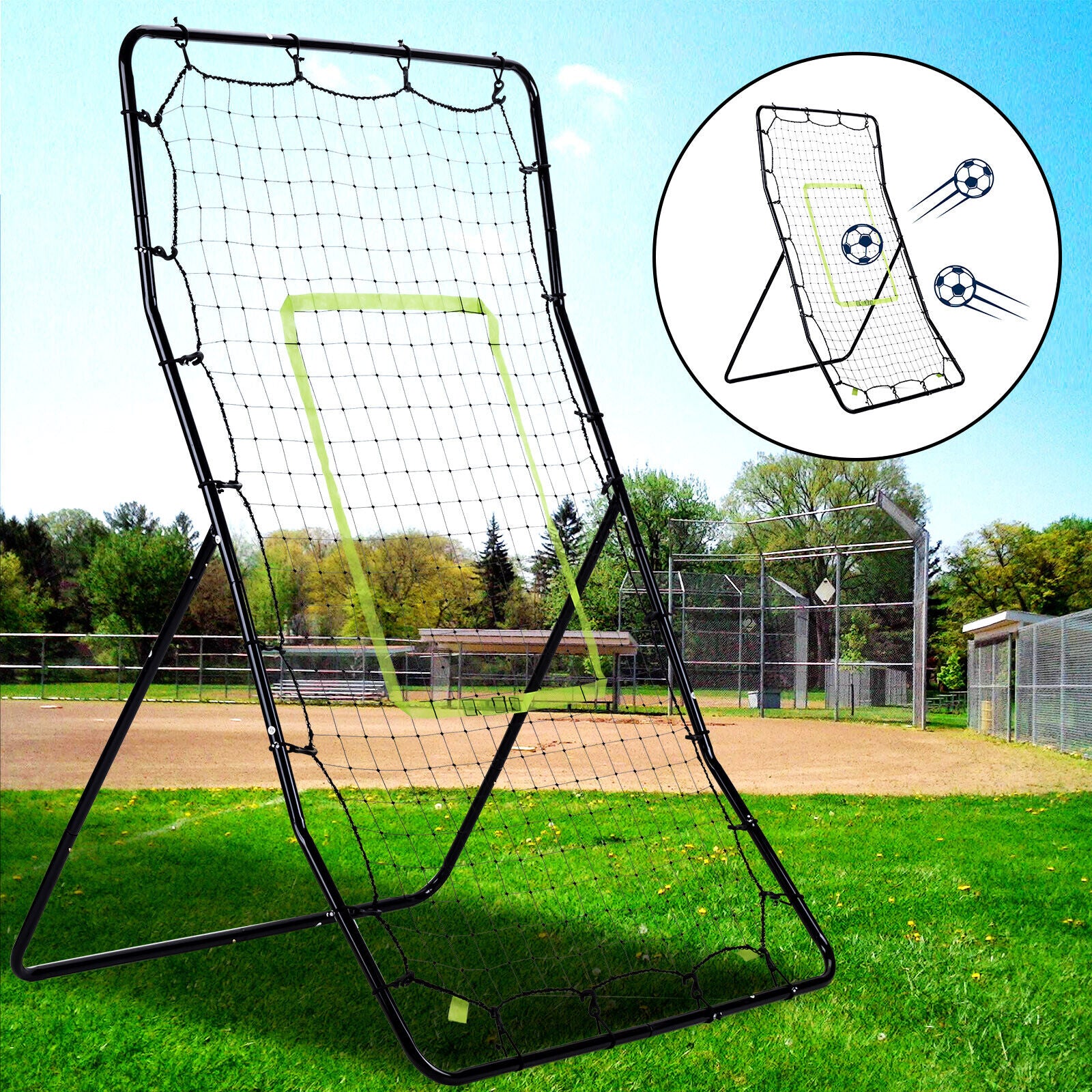 49*35" Rebounder Net Soccer Baseball Football Adjust Pitch Back Training Aids