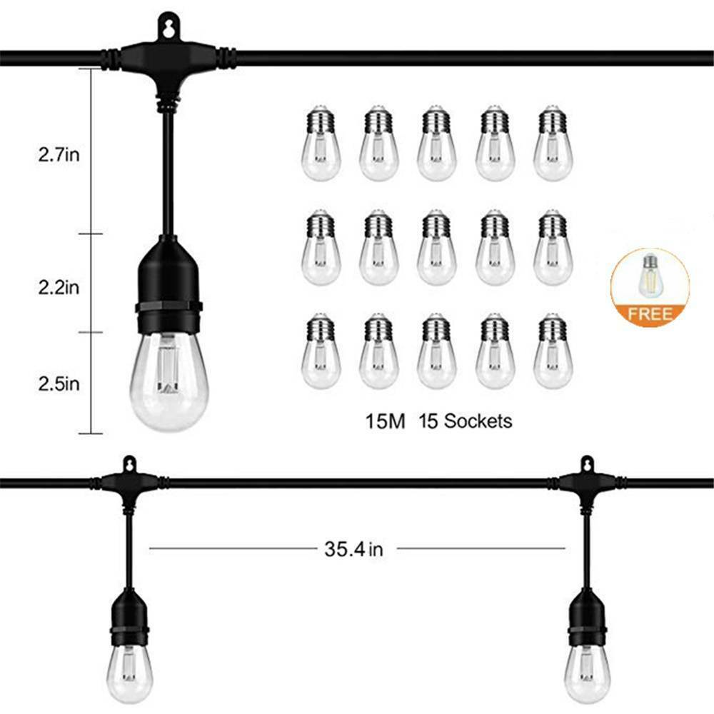 49 Ft Festoon Light Outdoor Lighting Garden String Main Heavy Duty UK Stock