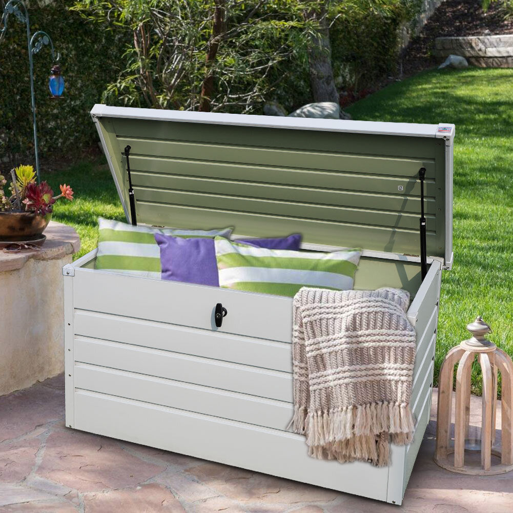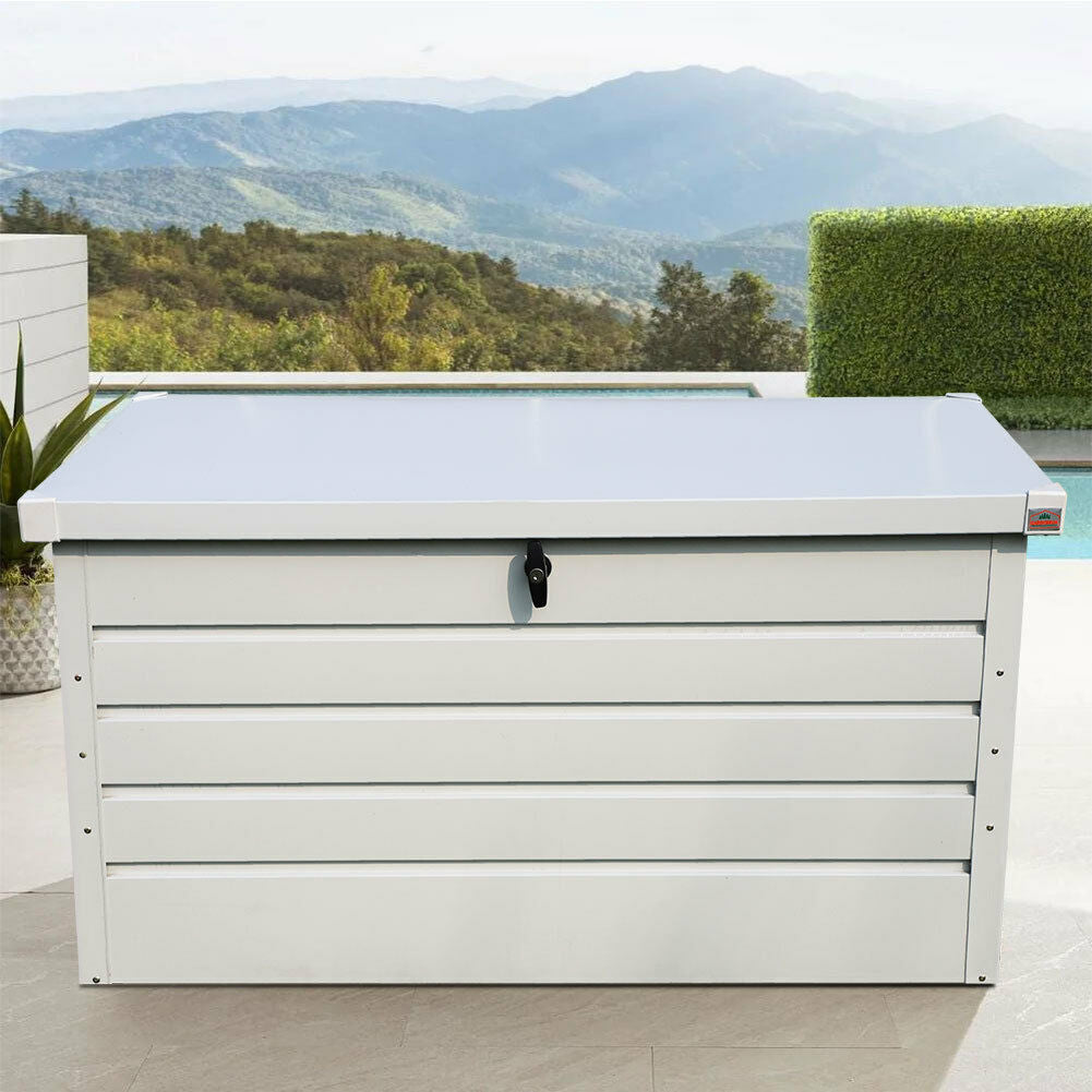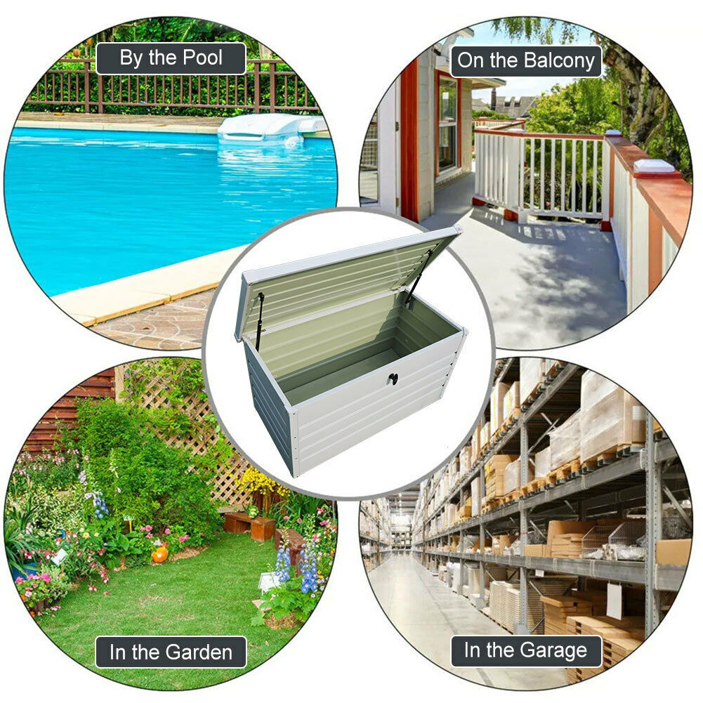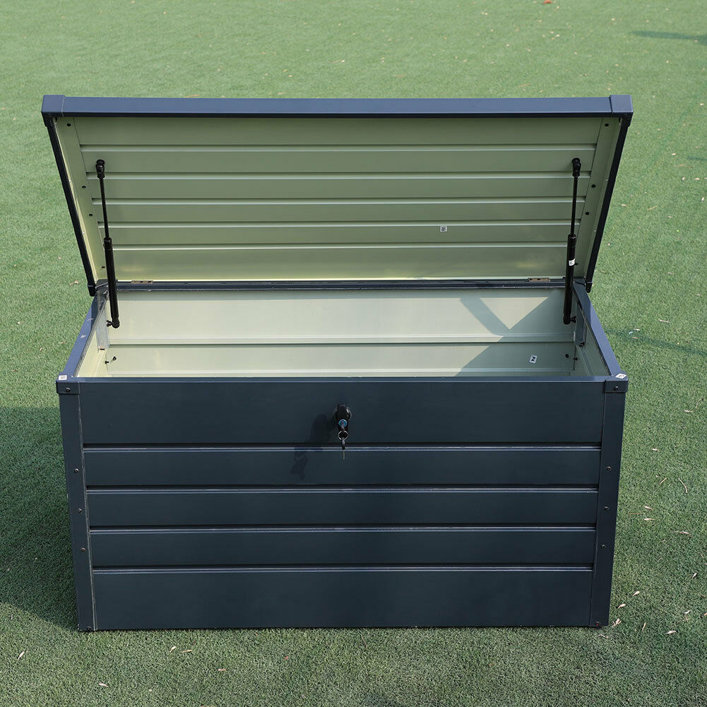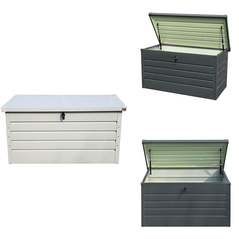 4Ft Large Outdoor Storage Box Garden Patio Steel Chest w/ Lid Lockable Container
