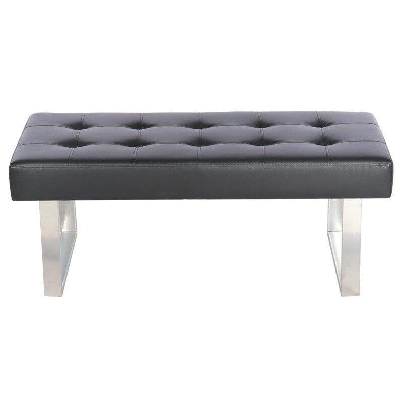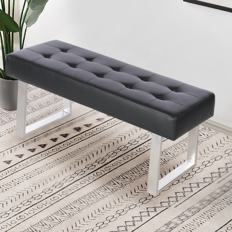 4FT Long PU Leather Bench Square Chrome Base Legs Bench Footrest Stool ChairSeat