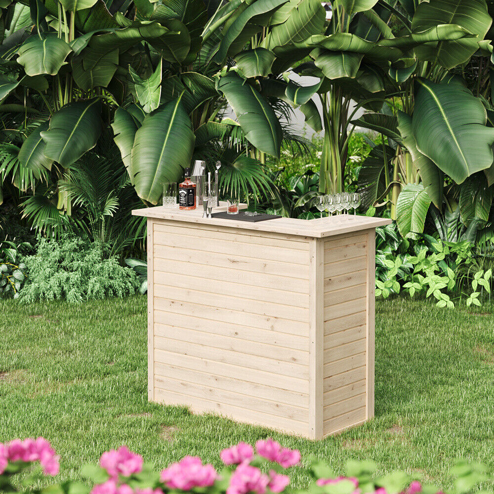 4FT Patio Bar Table Wood Garden Drinks Stand Pub Beer Counter Home Outdoor Desk