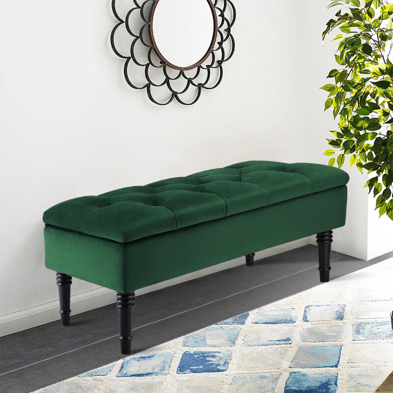 4FT Velvet Green Stool Storage Bench Chic Button Tufted Bedside Seat End Hallway