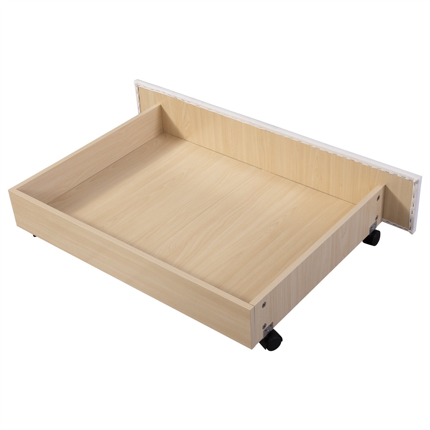 4ft6 Double Bed Frame PU Upholstered Platform Bed with 2 Drawers und Headboard
