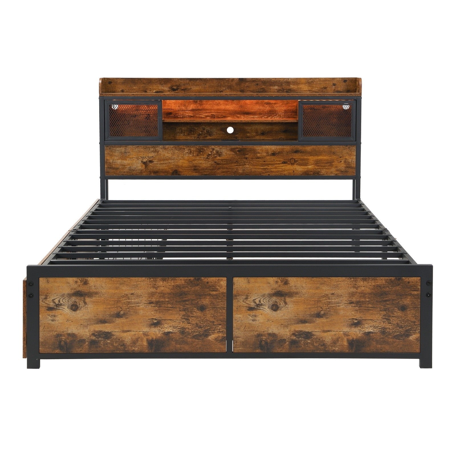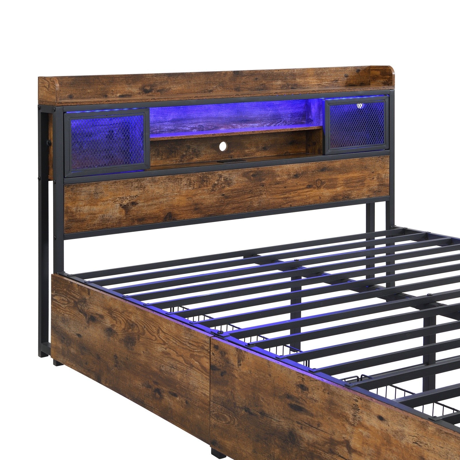 4FT6 DOUBLE BED FRAME WITH LED, CHARGING STATION, STORAGE HEADBOARD & DRAWERS