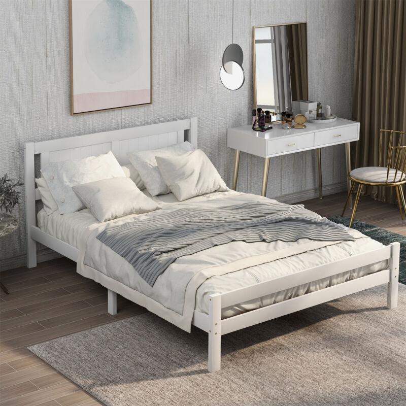4ft6 Double Bed Solid Wood Frame Wooden Shaker Style Bedroom Furniture White