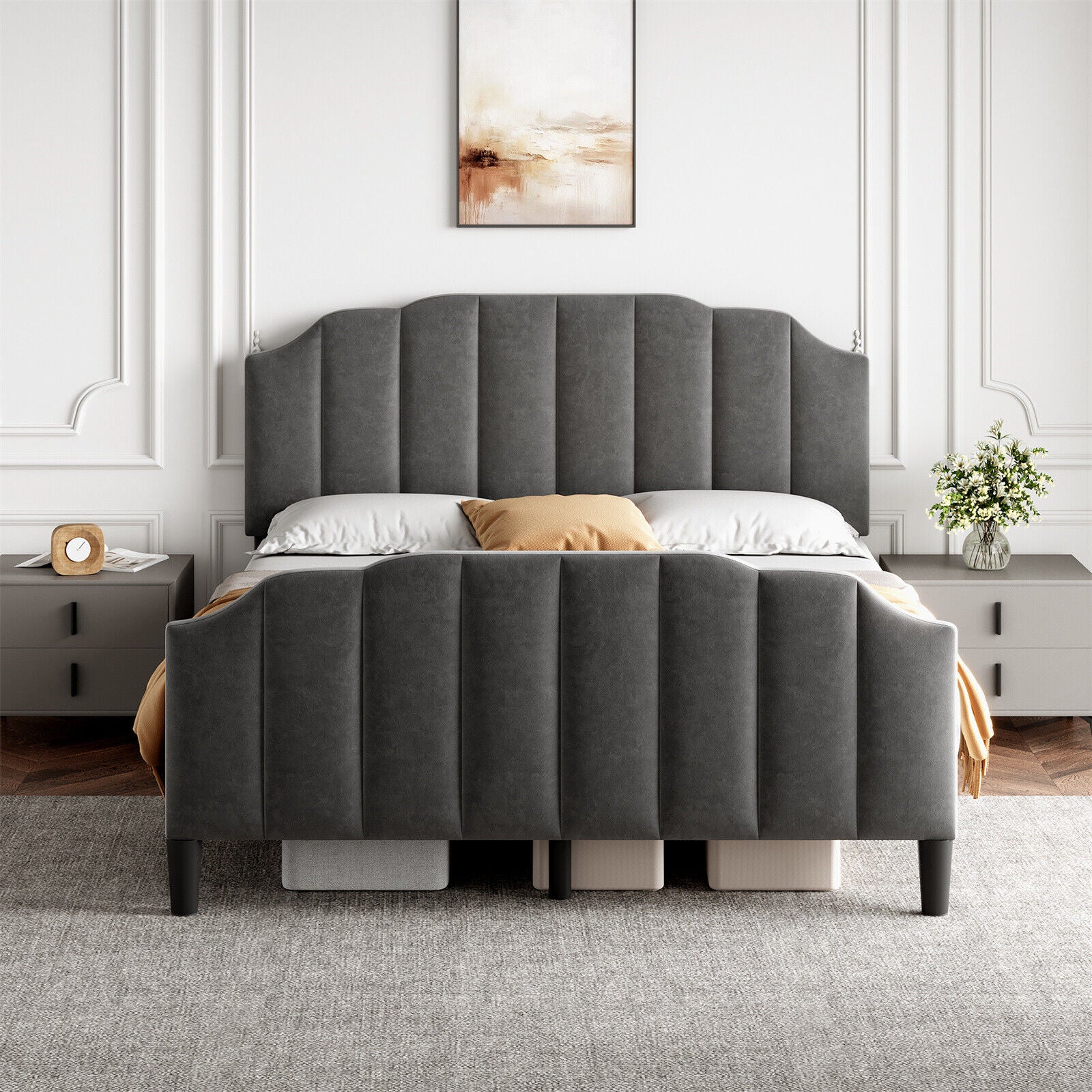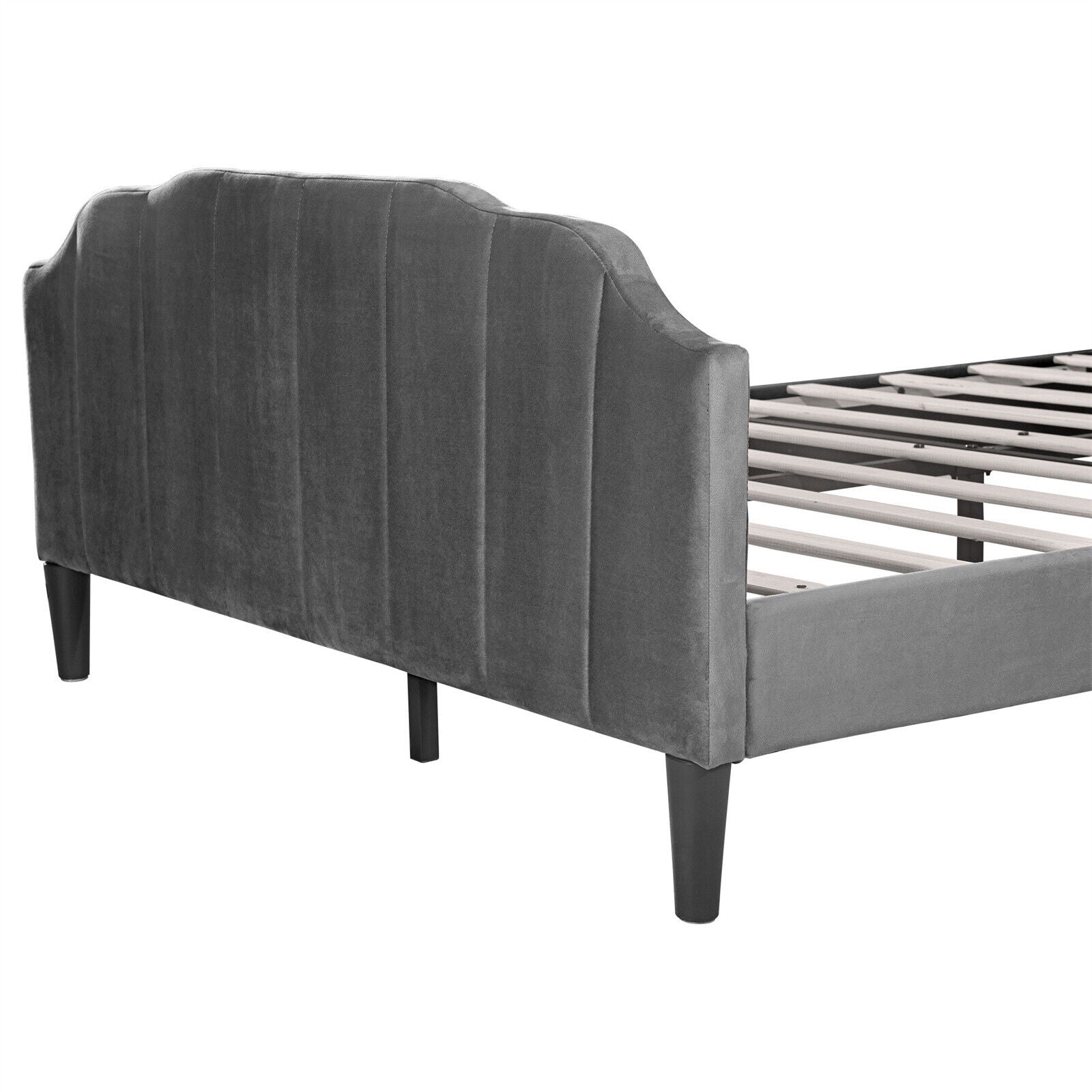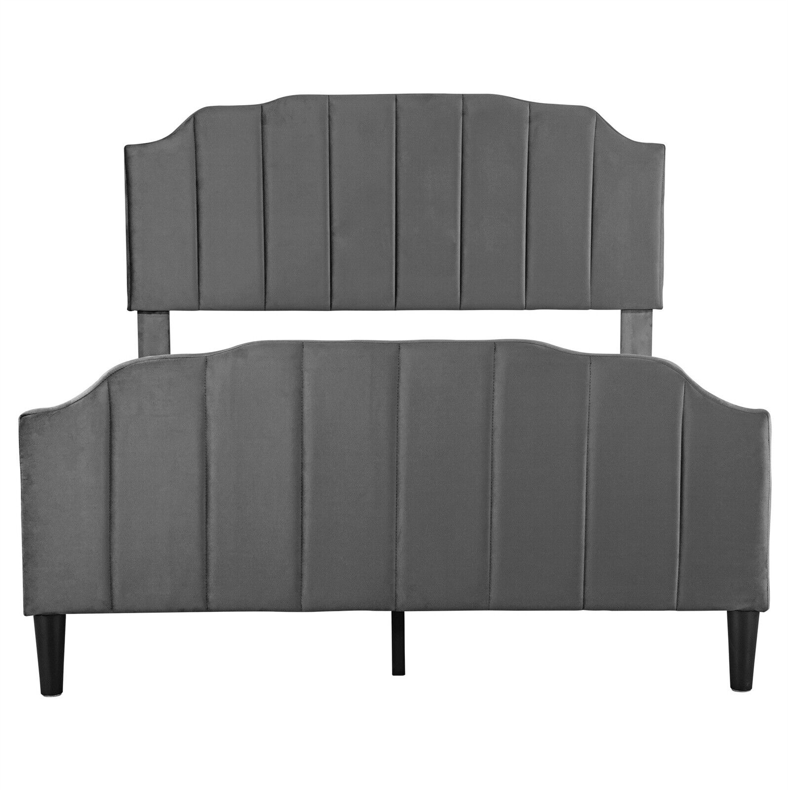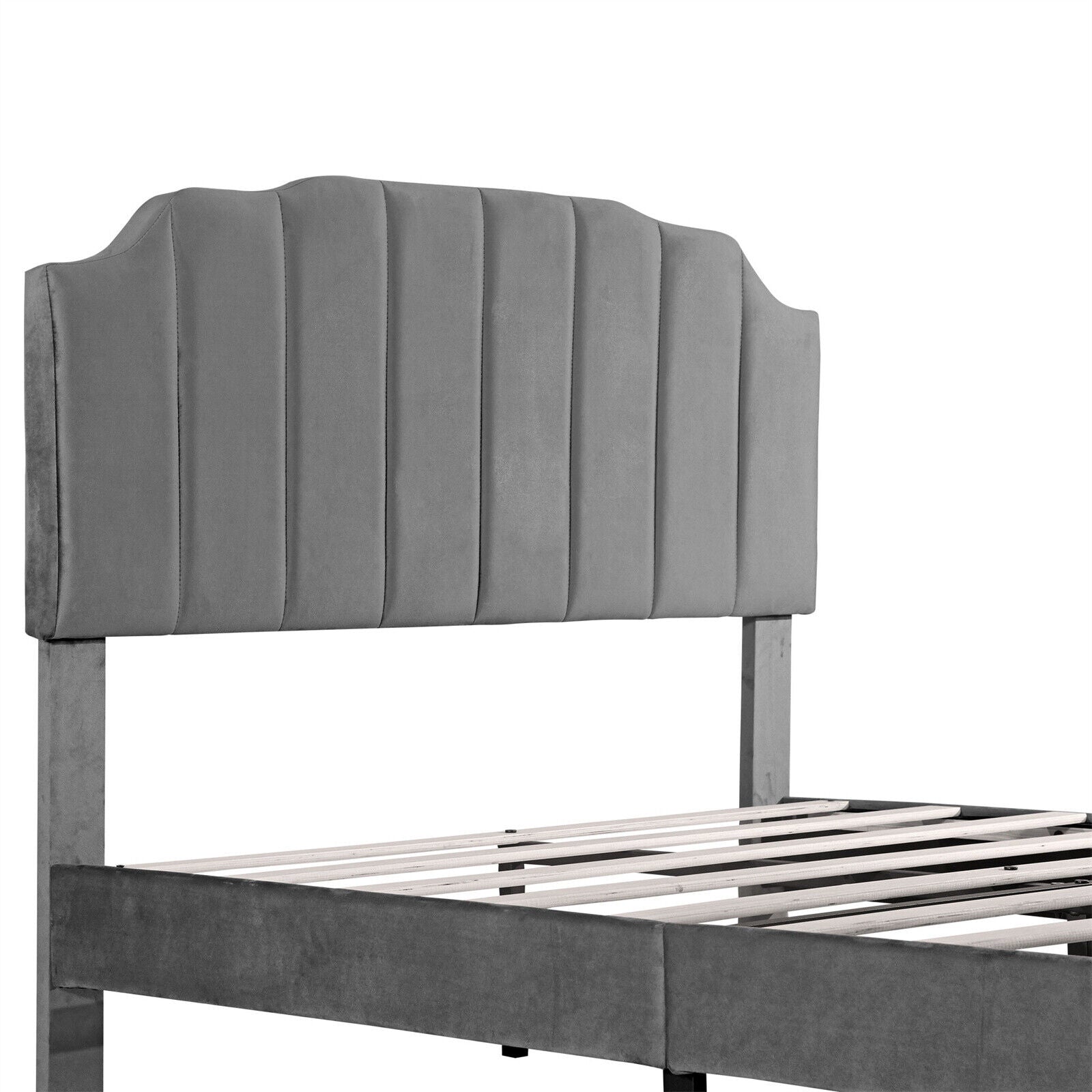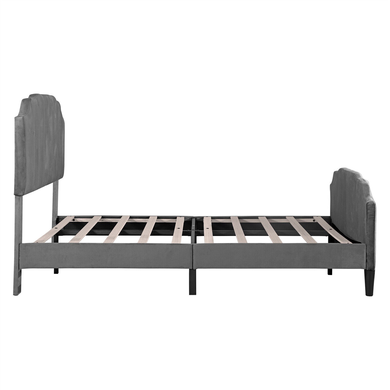 4ft6 Double Bed Upholstered Bed Frame with Headboard and Solid Wooden Slats Grey