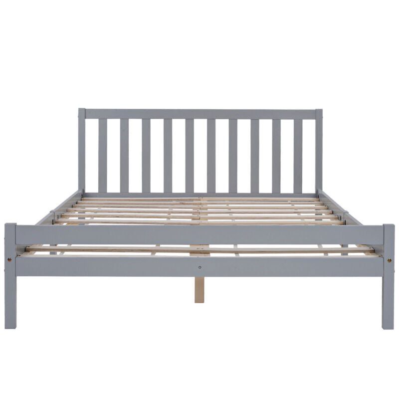 4ft6 Double Bed Wooden Frame Solid Pine Wood Bed Grey For Adults Kids Teenagers