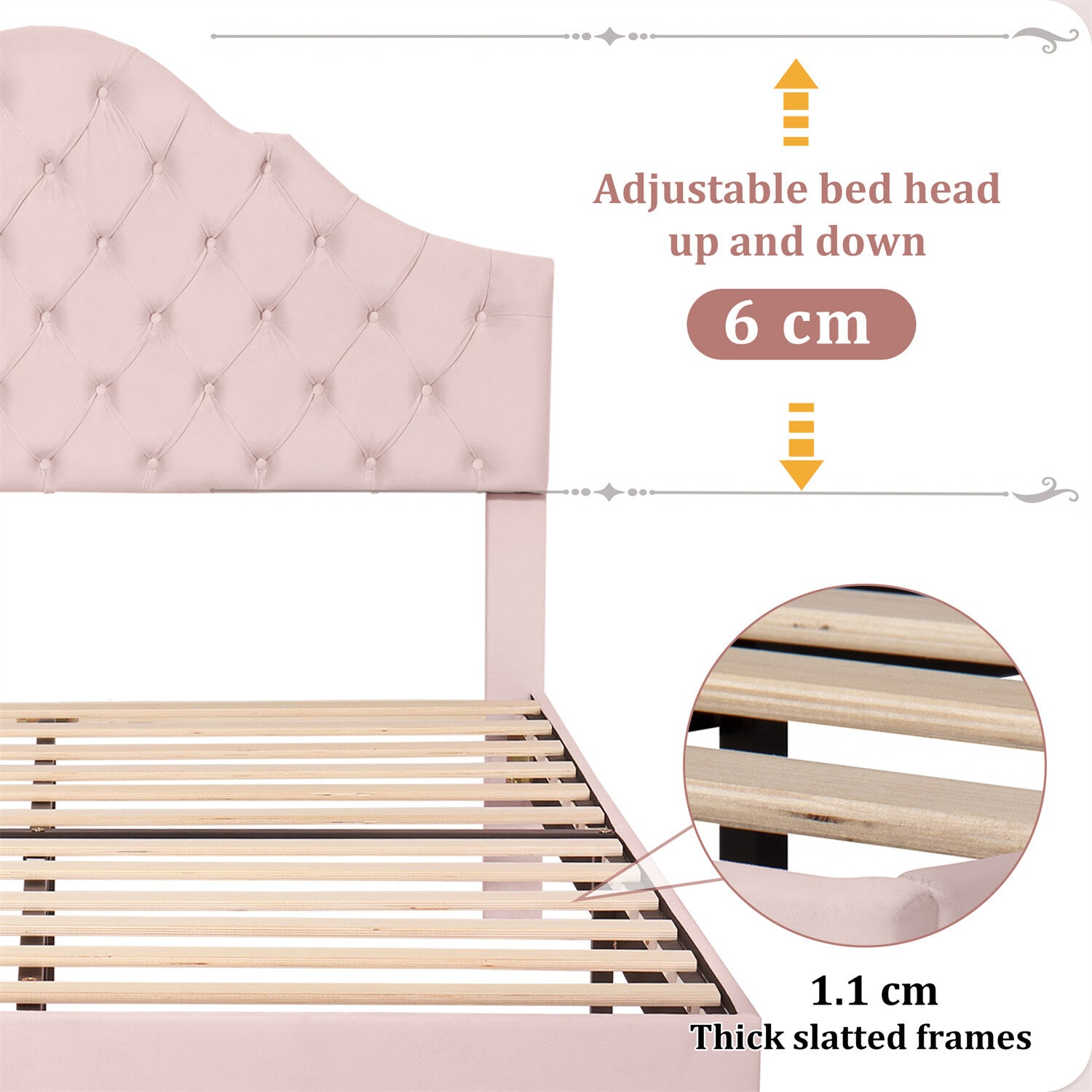 4ft6 Double Size Bed Frame Velvet Upholstered Platform Bed with Headboard Pink