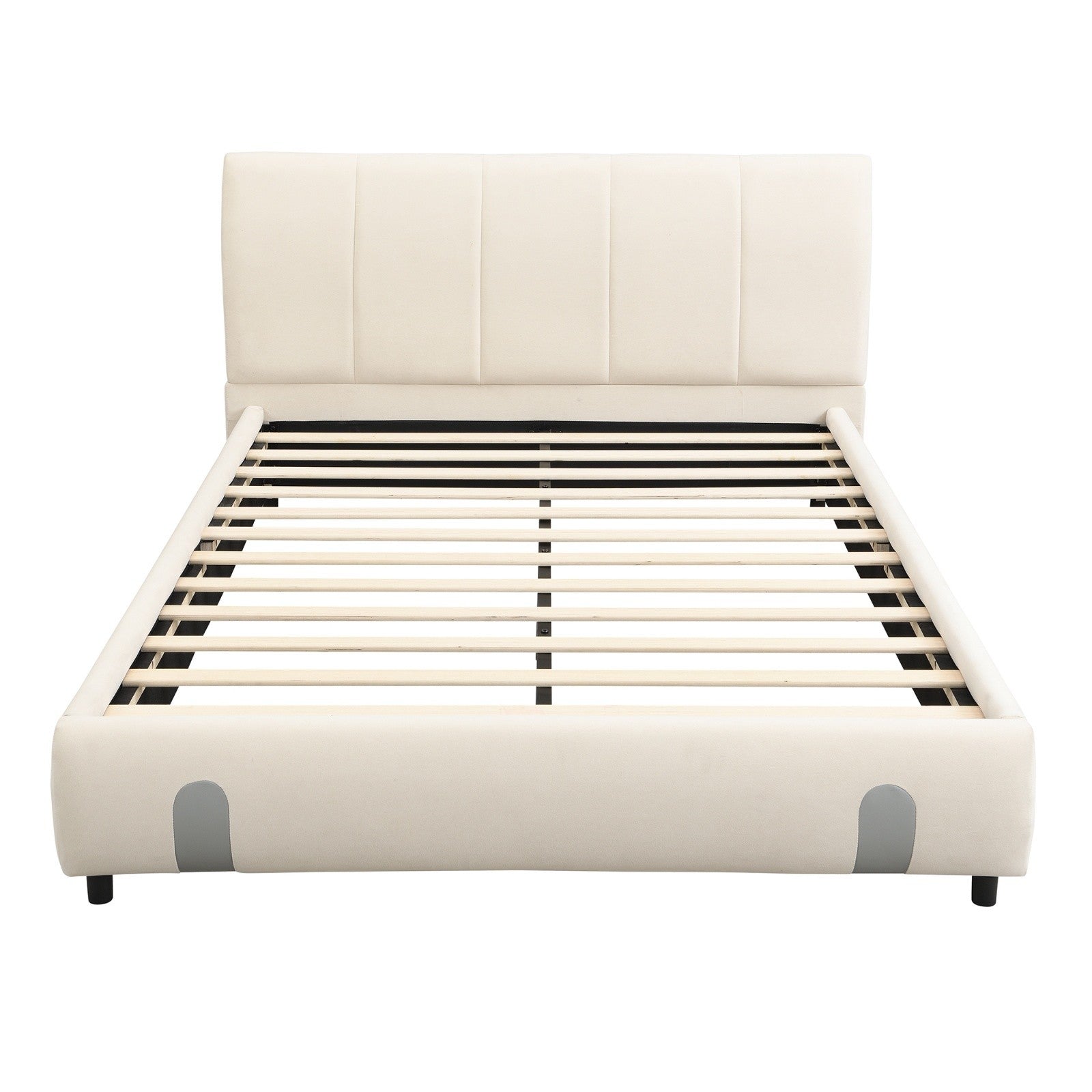 4FT6 DOUBLE SIZE BED PLUSH VELVET FABRIC UPHOLSTERED BED FRAME WITH HEADBOARD