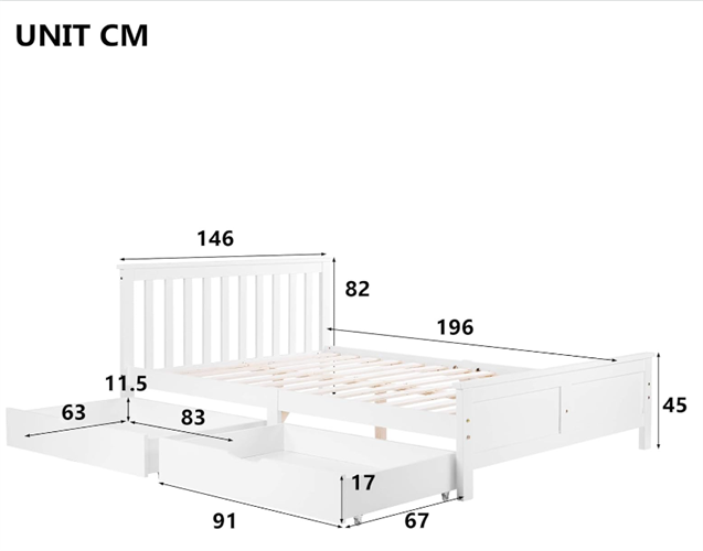 4ft6 Double Size Wooden Solid Pine White Bed Frame Storage Bed With 2 Drawers
