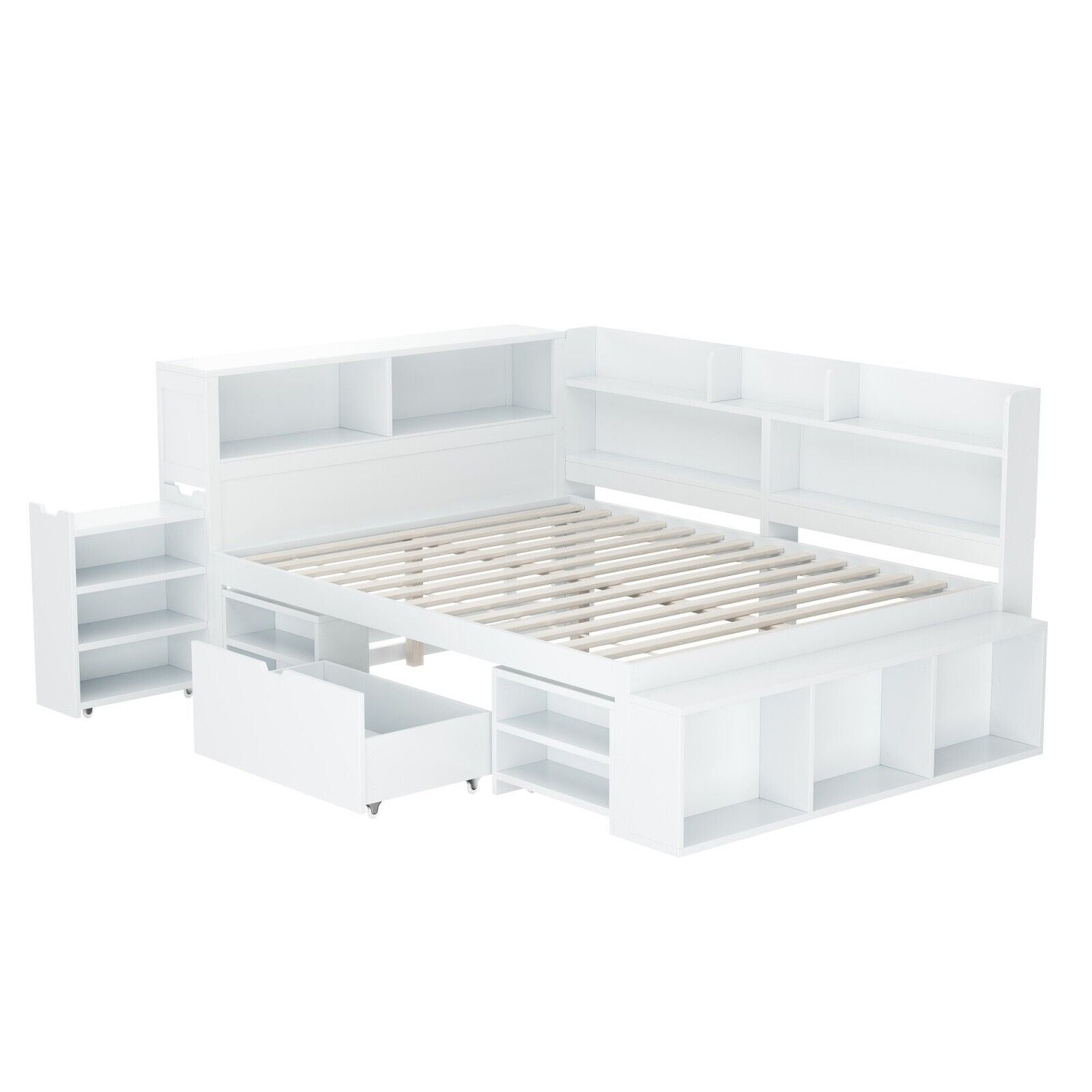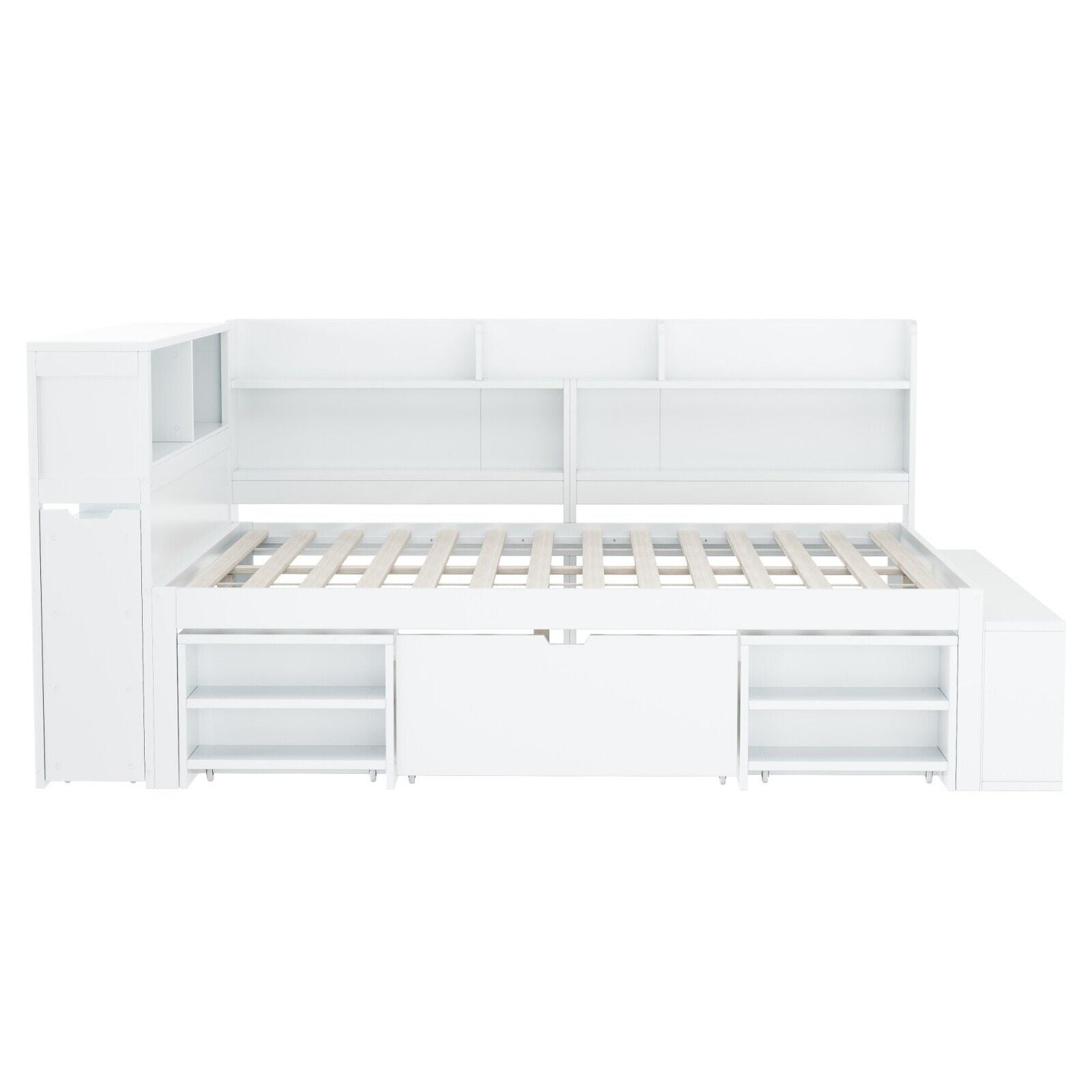 4ft6 Double Wooden Storage Bed Frame With Drawer and Cabinets for Kids Teenagers