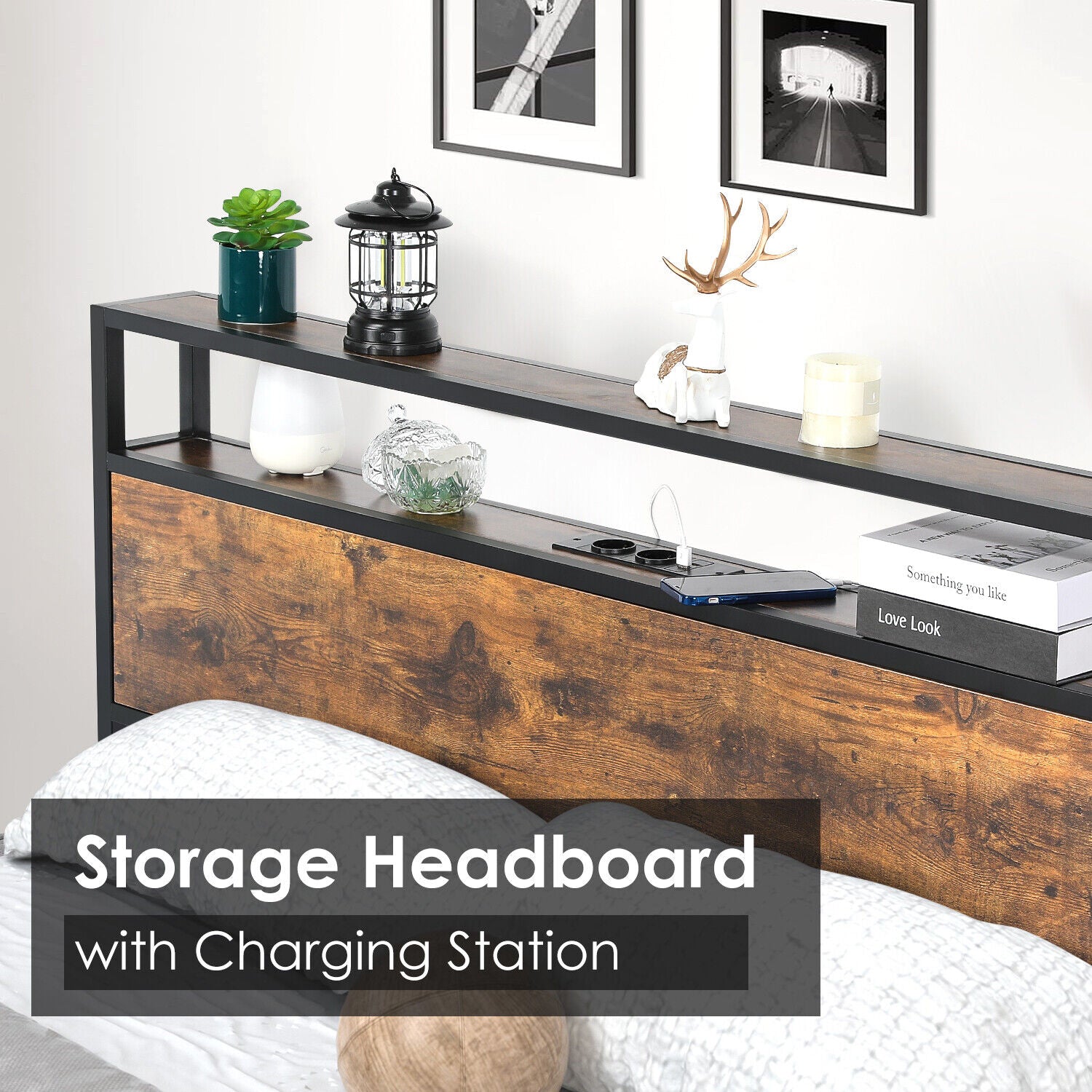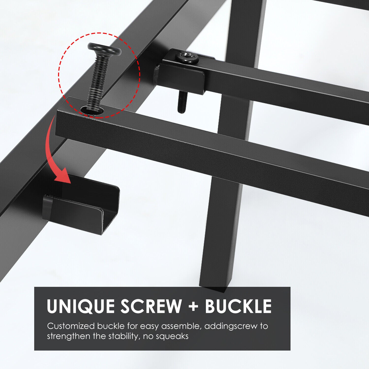 4ft6 Metal Bed Frame with Wood Headboard and Footboard/Heavy Duty Slat Zxvgkslzd
