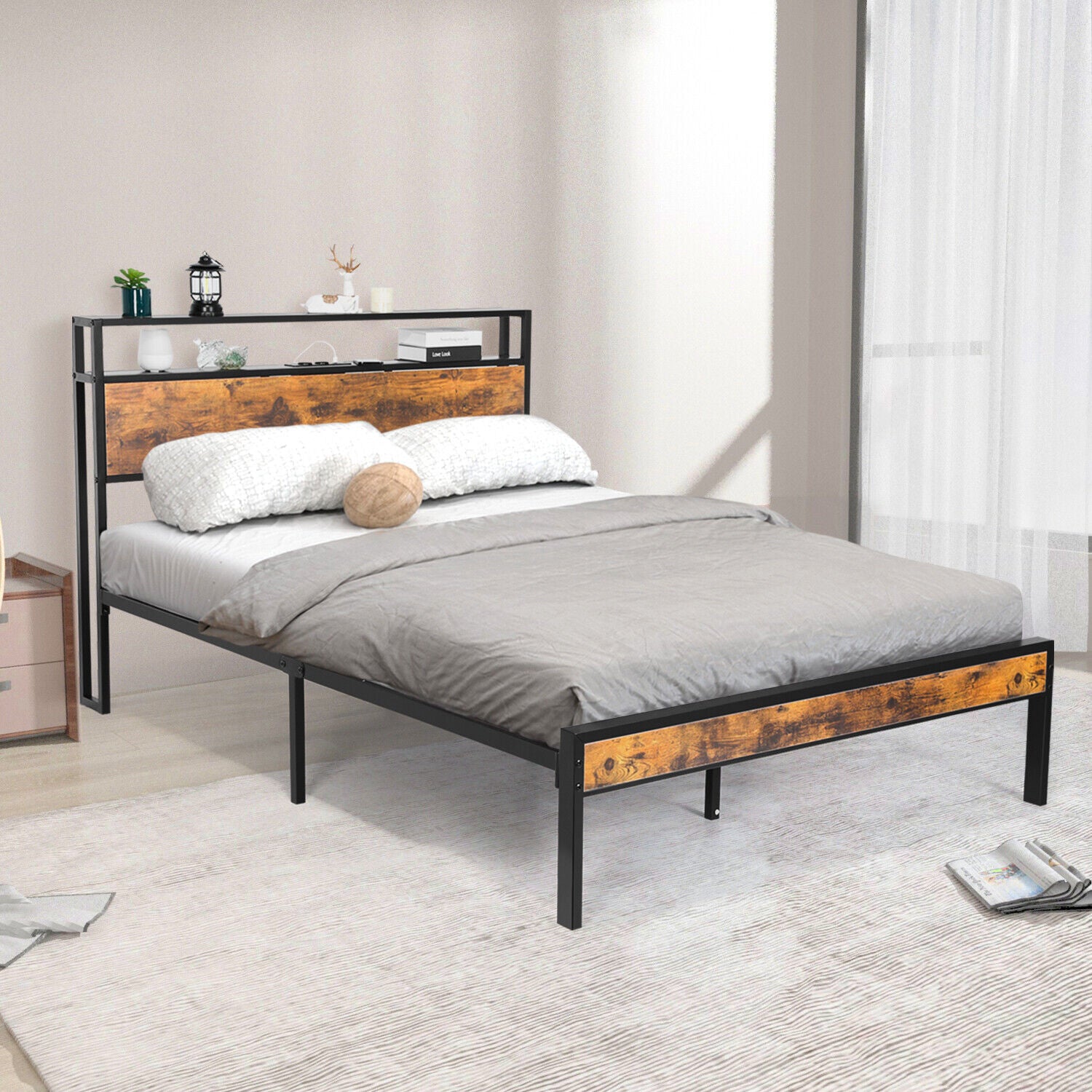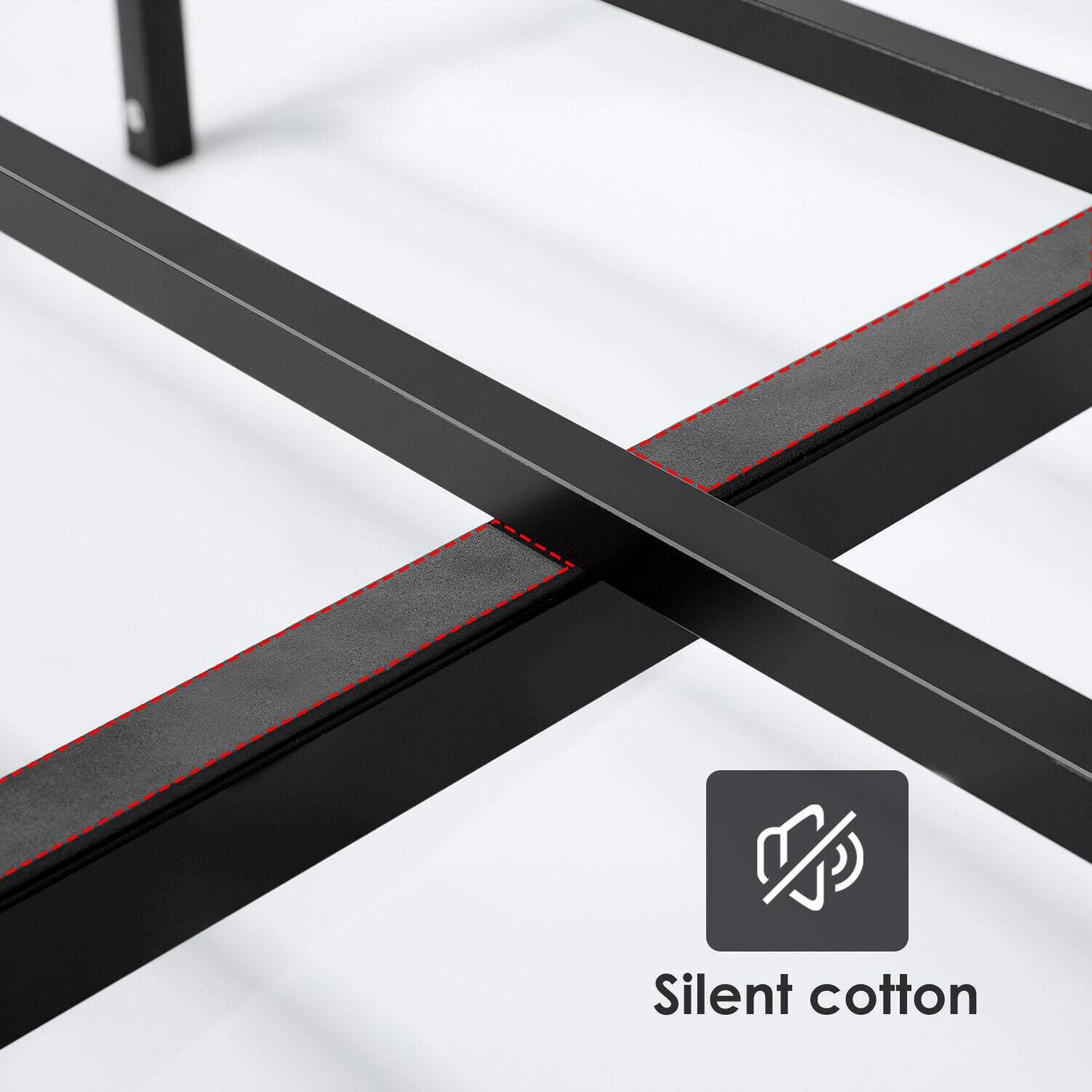 4ft6 Metal Bed Frame with Wood Headboard and Footboard/Heavy Duty Slat Zxvgkslzd