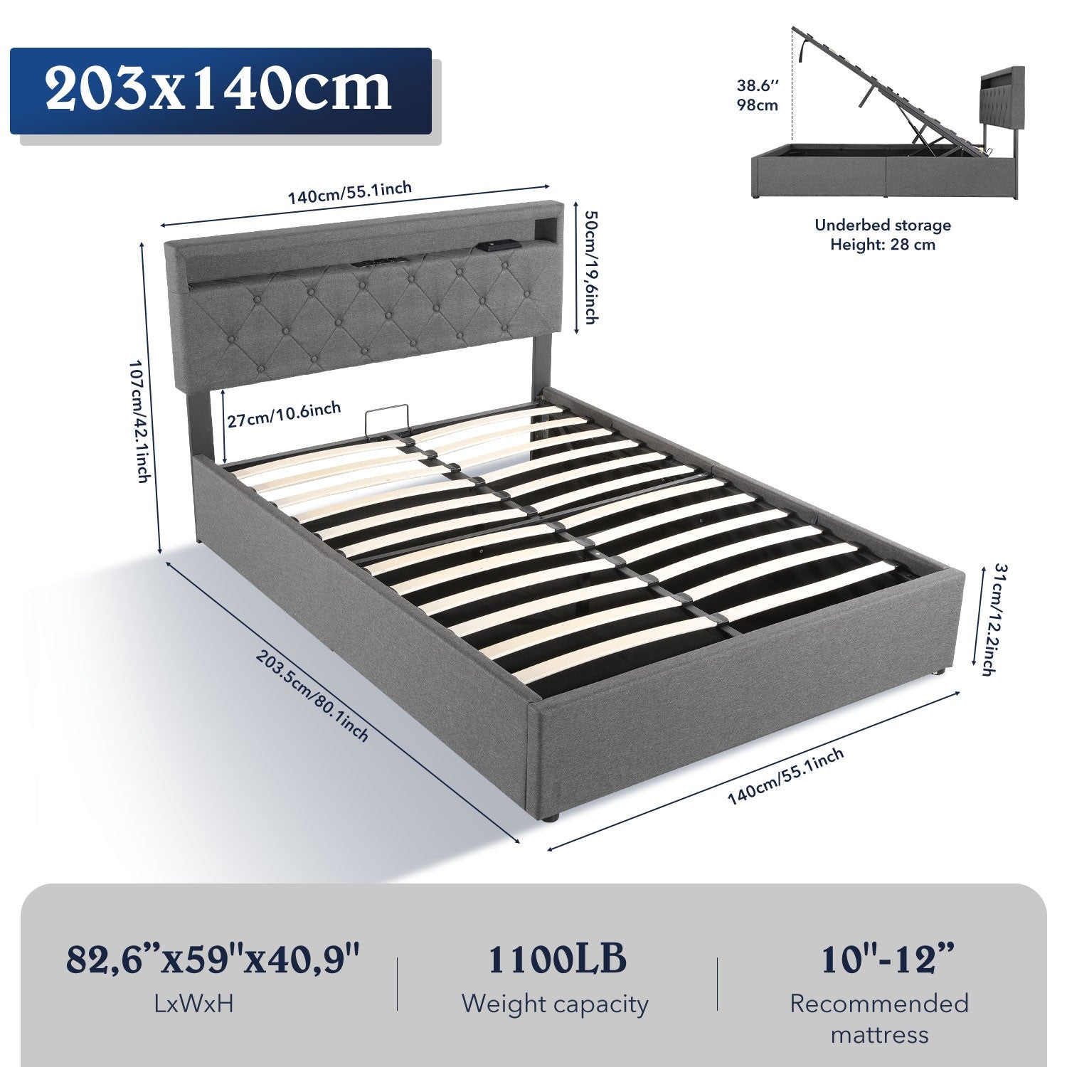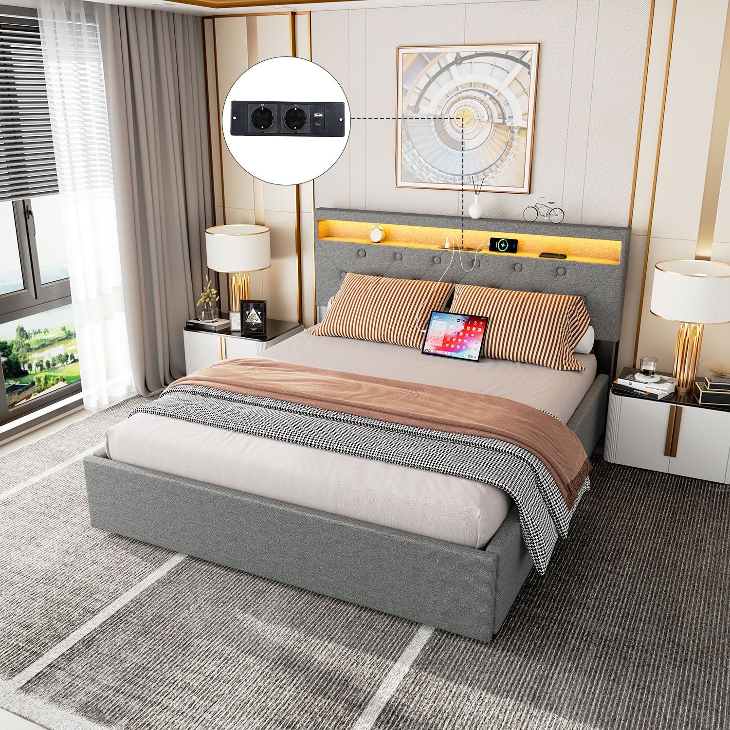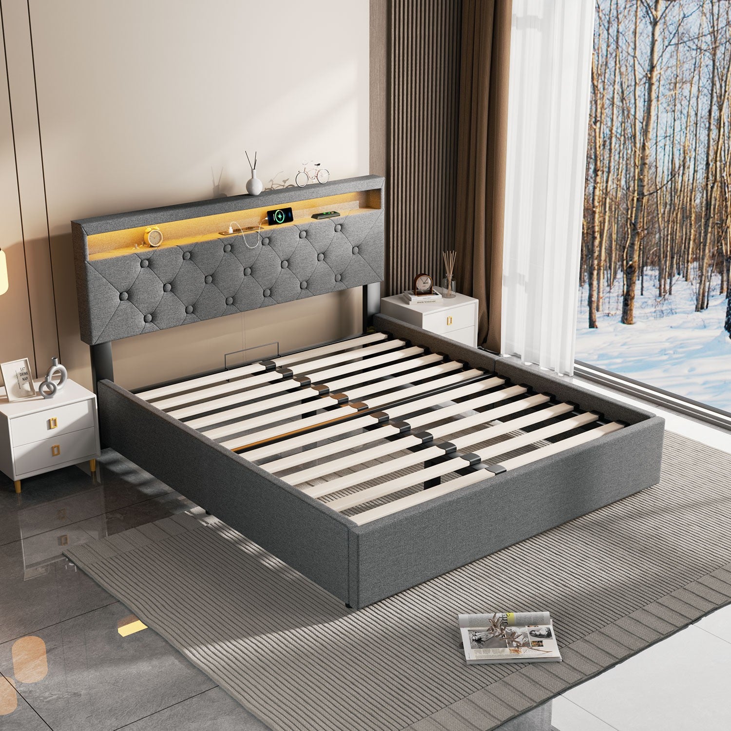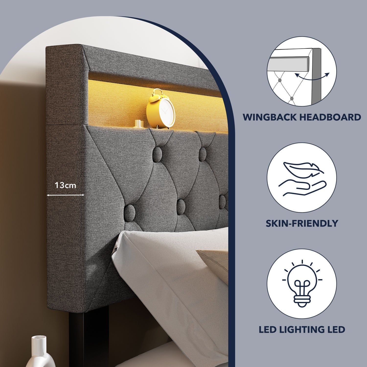 BED FRAME, With Charging Port, With RGB Led Light Strip, LED Light, Storage Headboard, Bluetooth Speaker