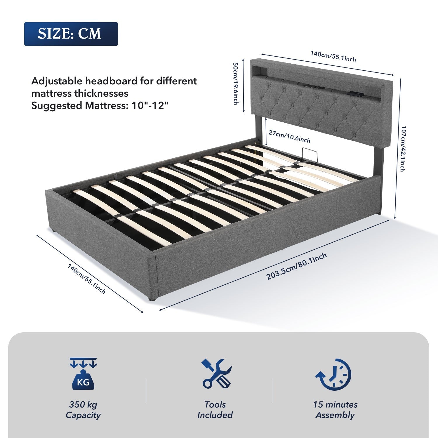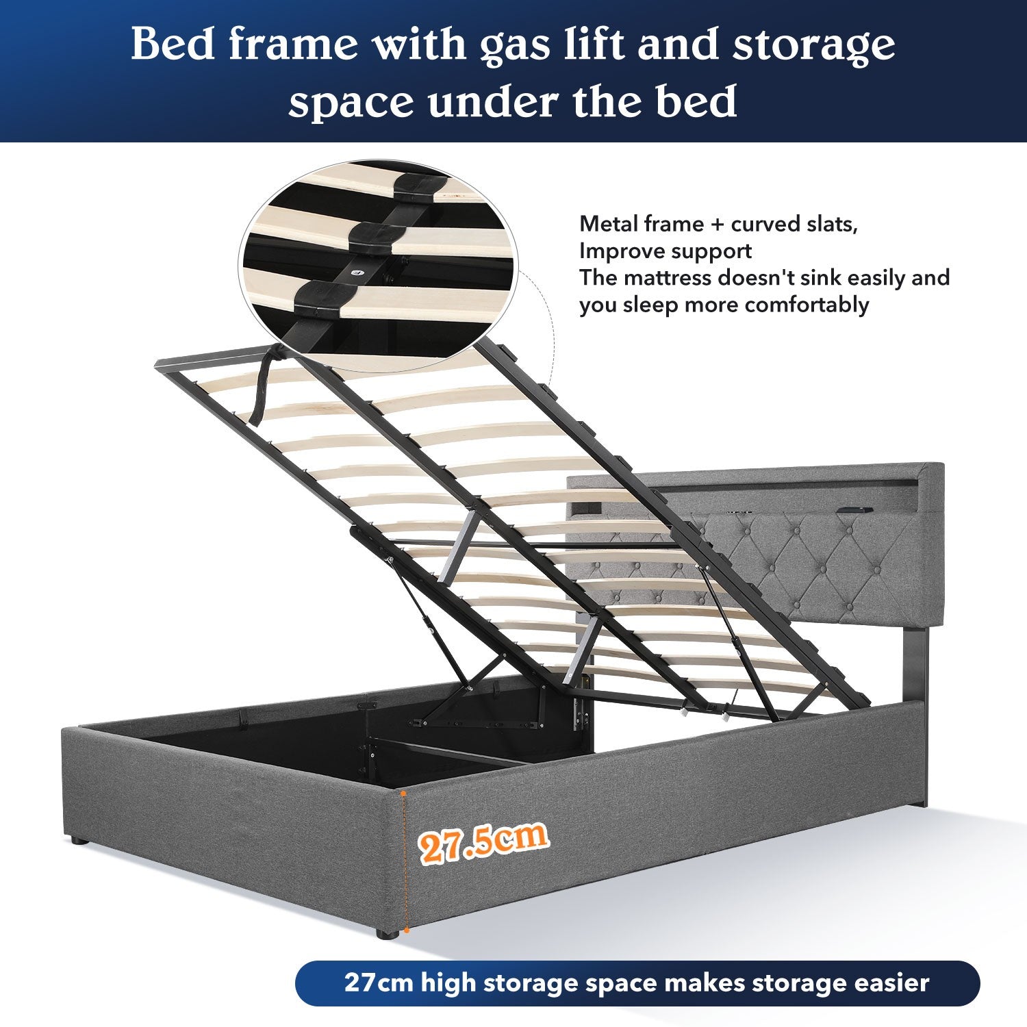 4FT6 OTTOMAN STORAGE BED FRAME WITH USB PORT & LED LIGHT & BLUETOOTH SPEAKER