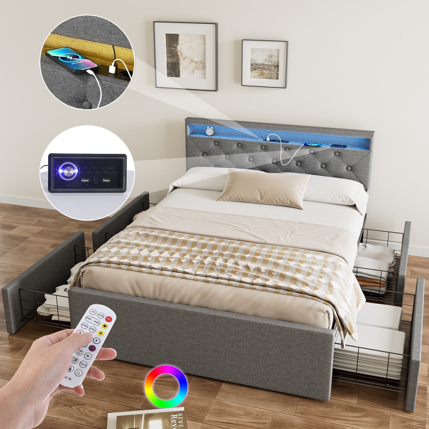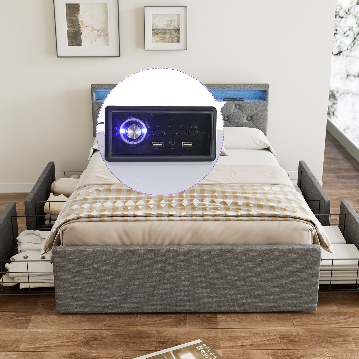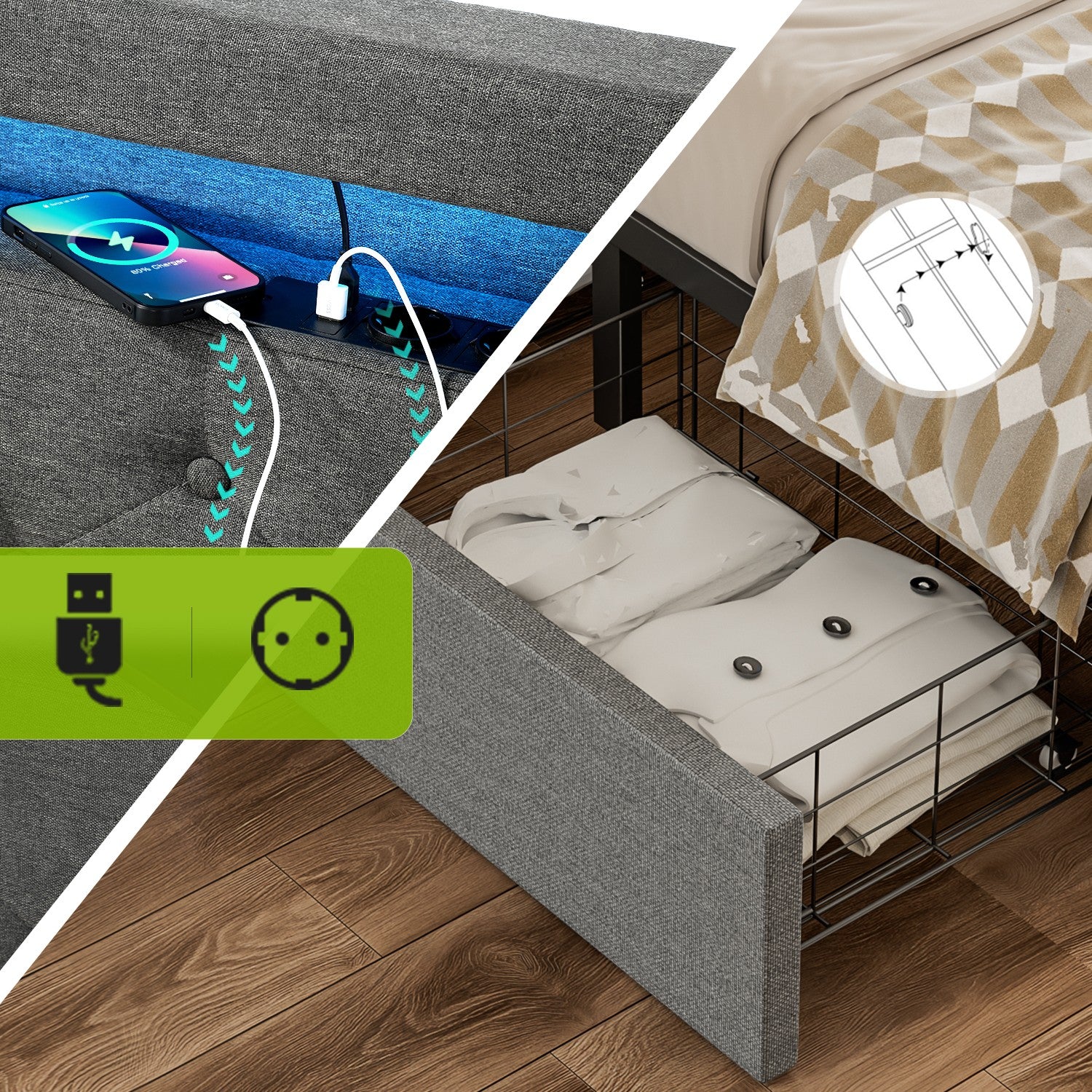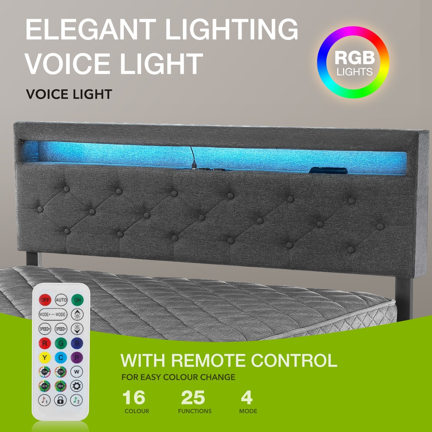 BED FRAME, With Charging Port, With RGB Led Light Strip, LED Light, Storage Headboard, Bluetooth Speaker