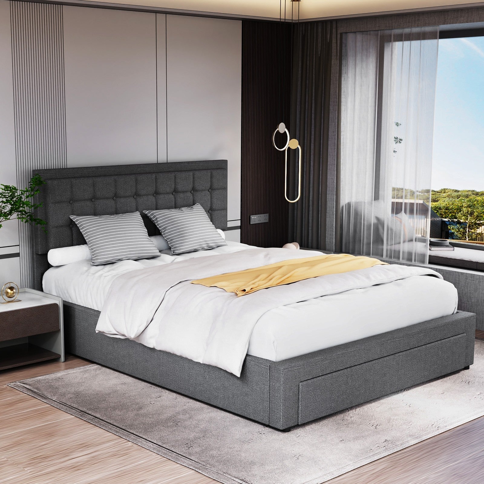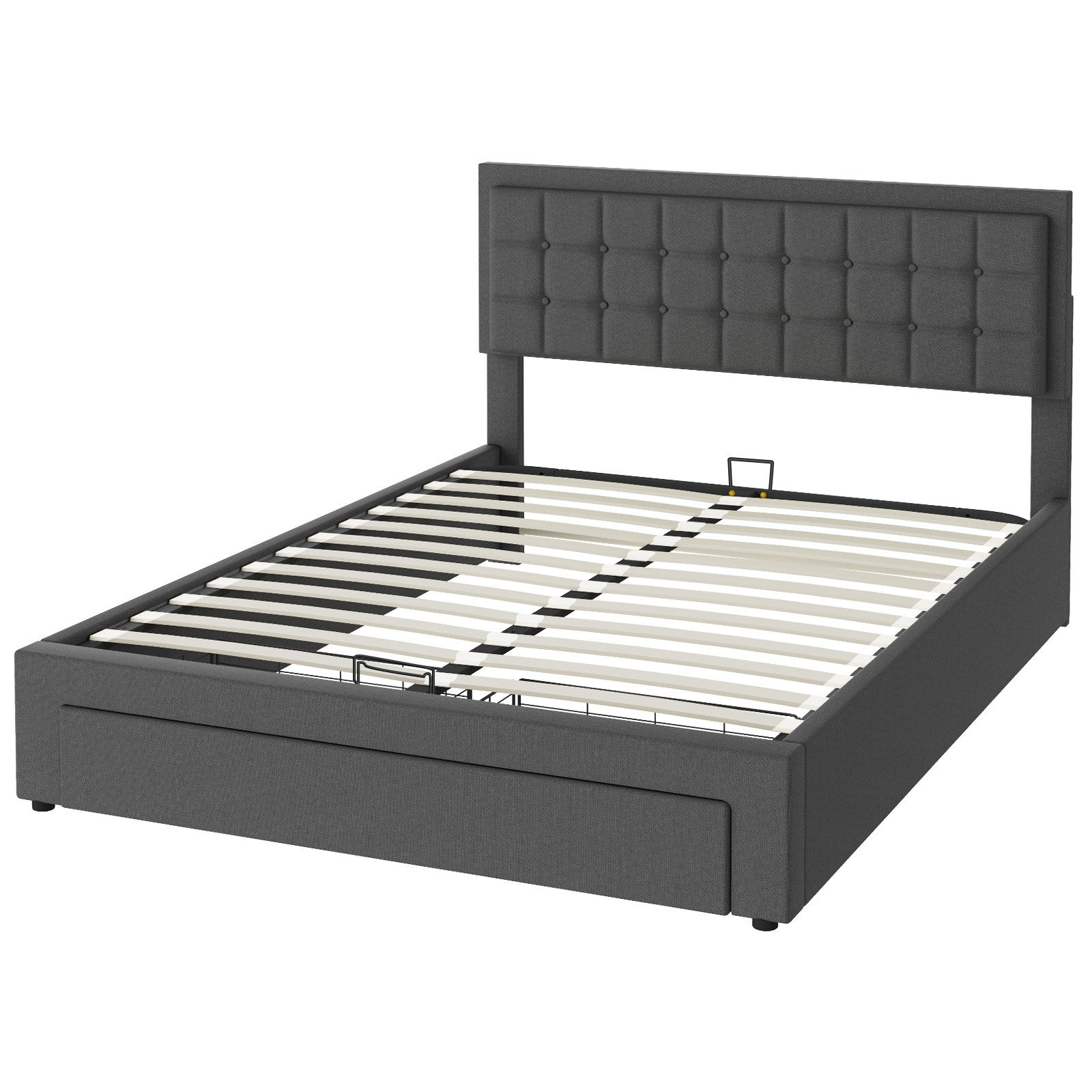 BED FRAME, With Charging Port, With RGB Led Light Strip, LED Light, Storage Headboard
