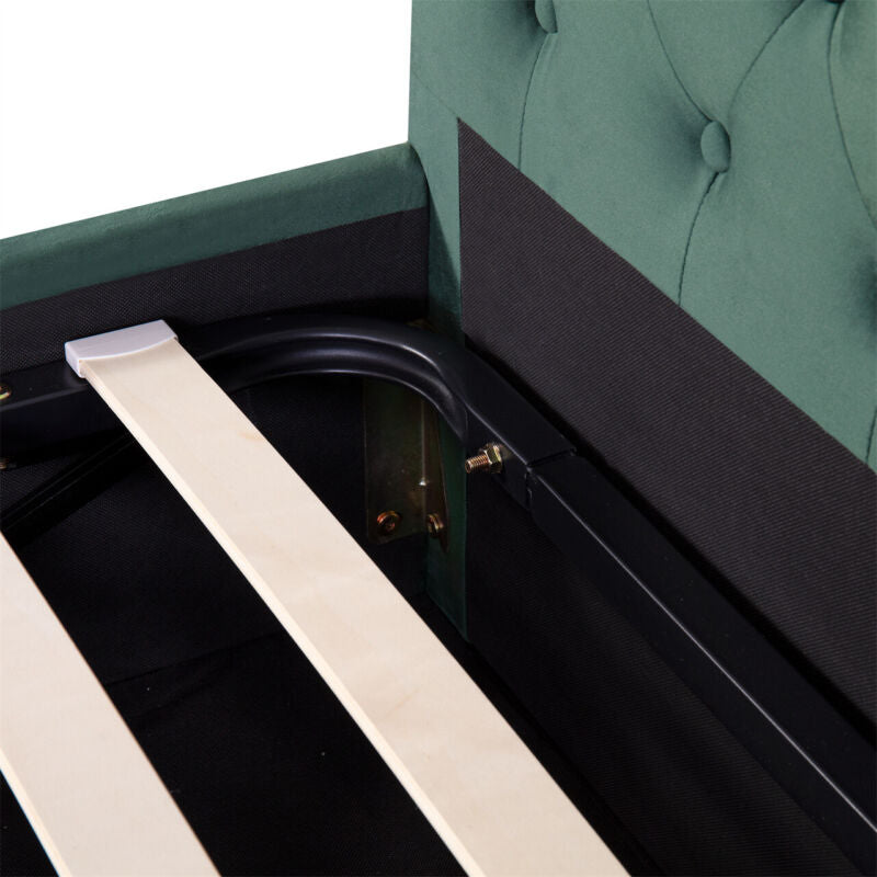 4ft6 Upholstered Bed Frame Fabric Gas Lift Ottoman Storage Beds in Double Green