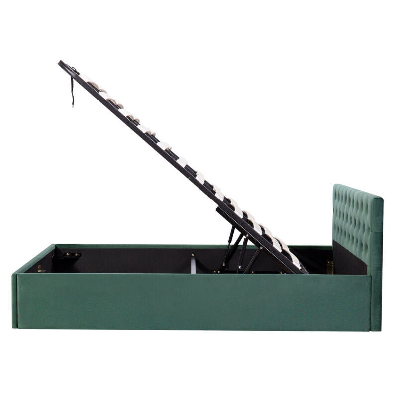 4ft6 Upholstered Bed Frame Fabric Gas Lift Ottoman Storage Beds in Double Green