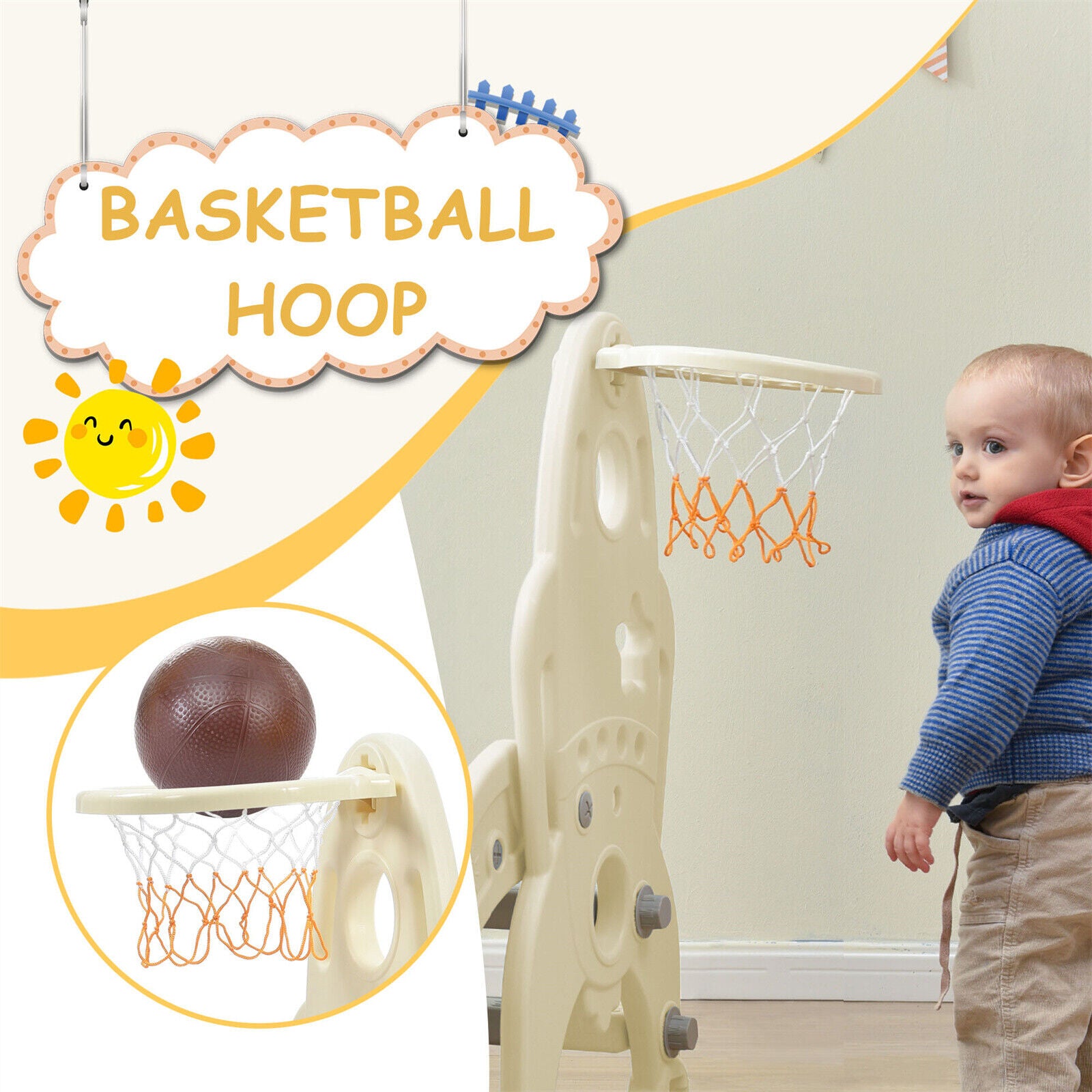 4in1 Kids Slide and Swing Set for Baby Toddler w/ Swing Slide Climber Hoop Beige