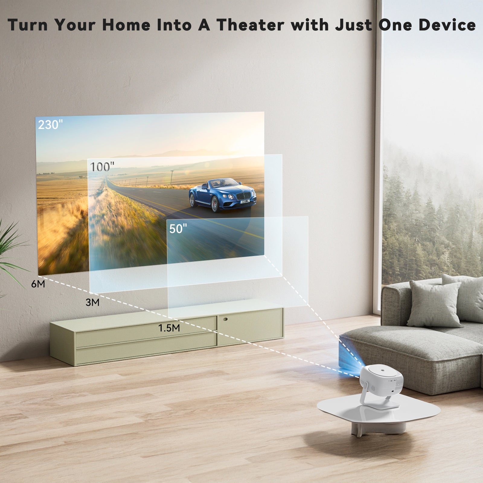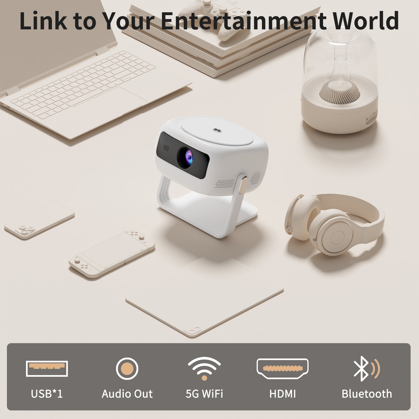 Built-in Speakers, Ceiling Projection, HD Ready, Portable, Table Top Projection, Timer, Universal Remote Control, Zoom Function, Giant Display 50-230", Support Red and Blue 3D, Low Noise, 70000hrs Lamp Life, ±15°Keystone Correction, 5.0 Bidirectional Bluetooth, Electric Focus, 360° Rotatable Stand, WiFi 6 Dual Band 5G WiFi, Sleep Timer Function, Full-Sealed Optical Projector