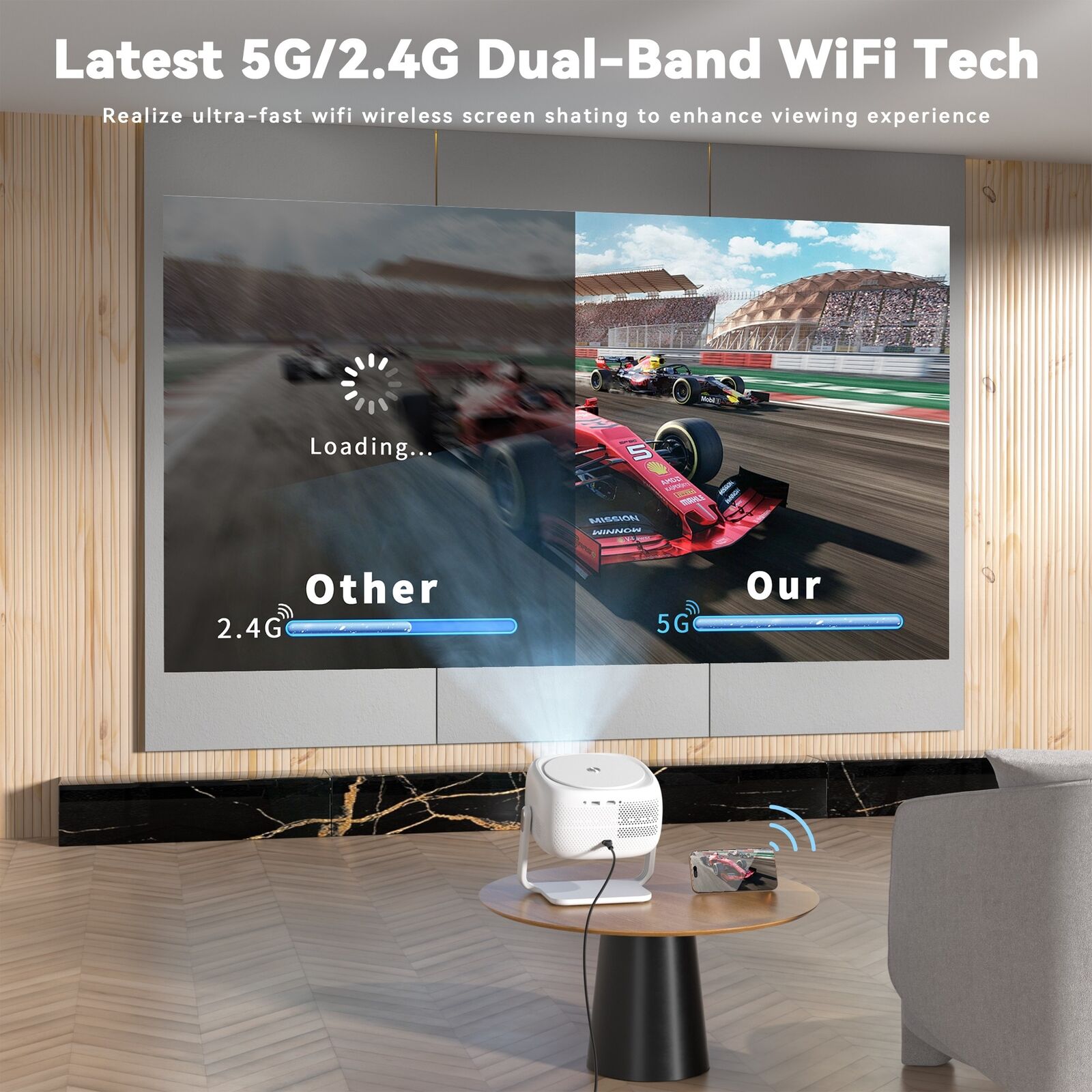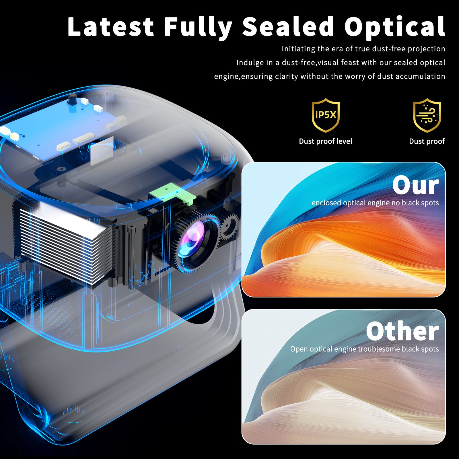 Features Built-in Speakers, Ceiling Projection, HD Ready, Portable, Table Top Projection, Timer, Universal Remote Control, Zoom Function, Giant Display 50-230", Support Red and Blue 3D, Low Noise, 70000hrs Lamp Life, ±15°Keystone Correction, 5.0 Bidirectional Bluetooth, Electric Focus, 360° Rotatable Stand, WiFi 6 Dual Band 5G WiFi, Sleep Timer Function, Full-Sealed Optical Projector