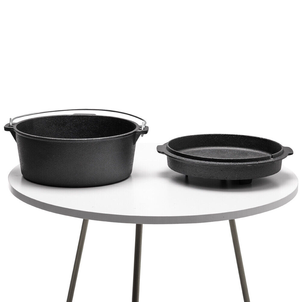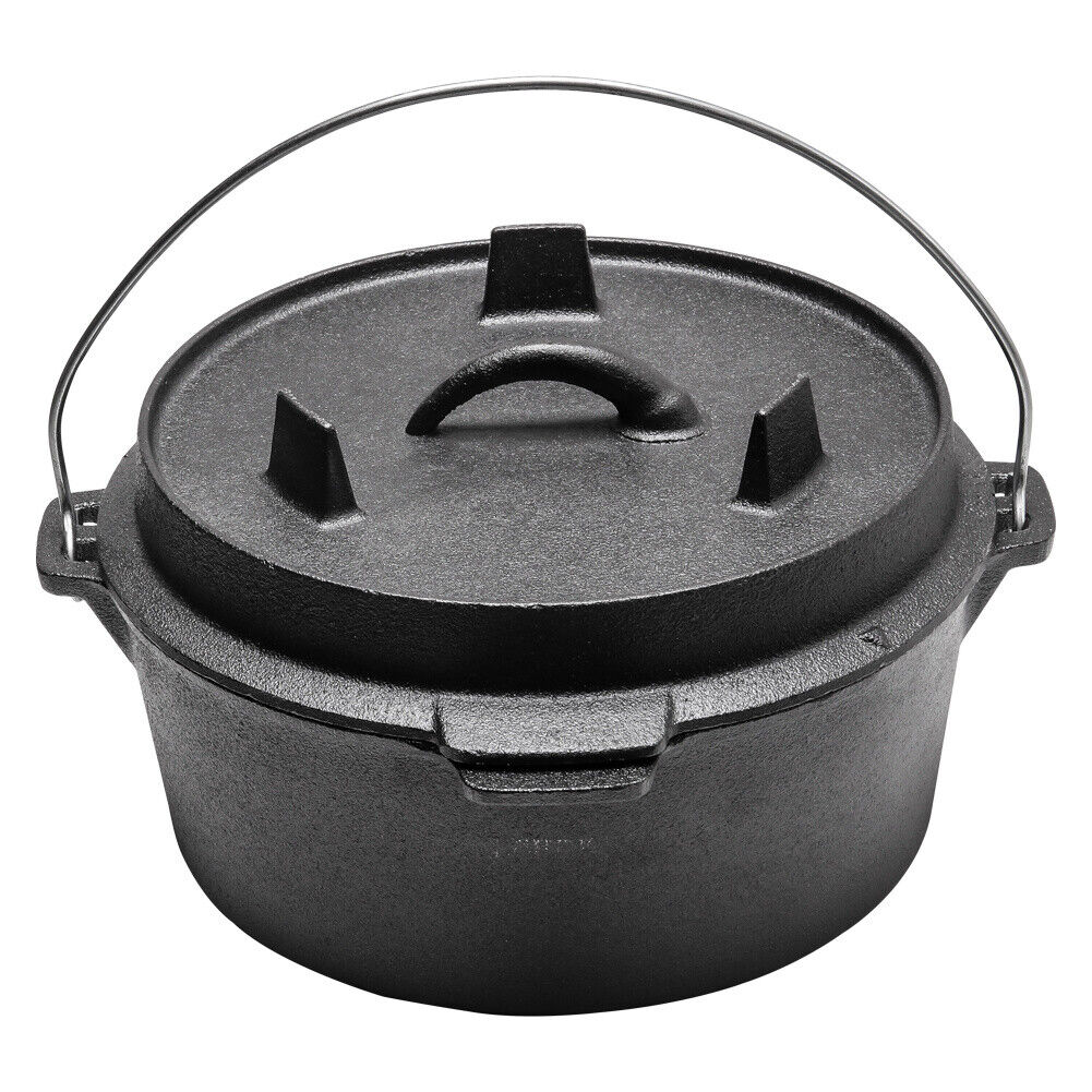 4L Cast Iron Dutch Oven Pot Dish Sauce Stockpot Cooking Camping Stew Lid Handle