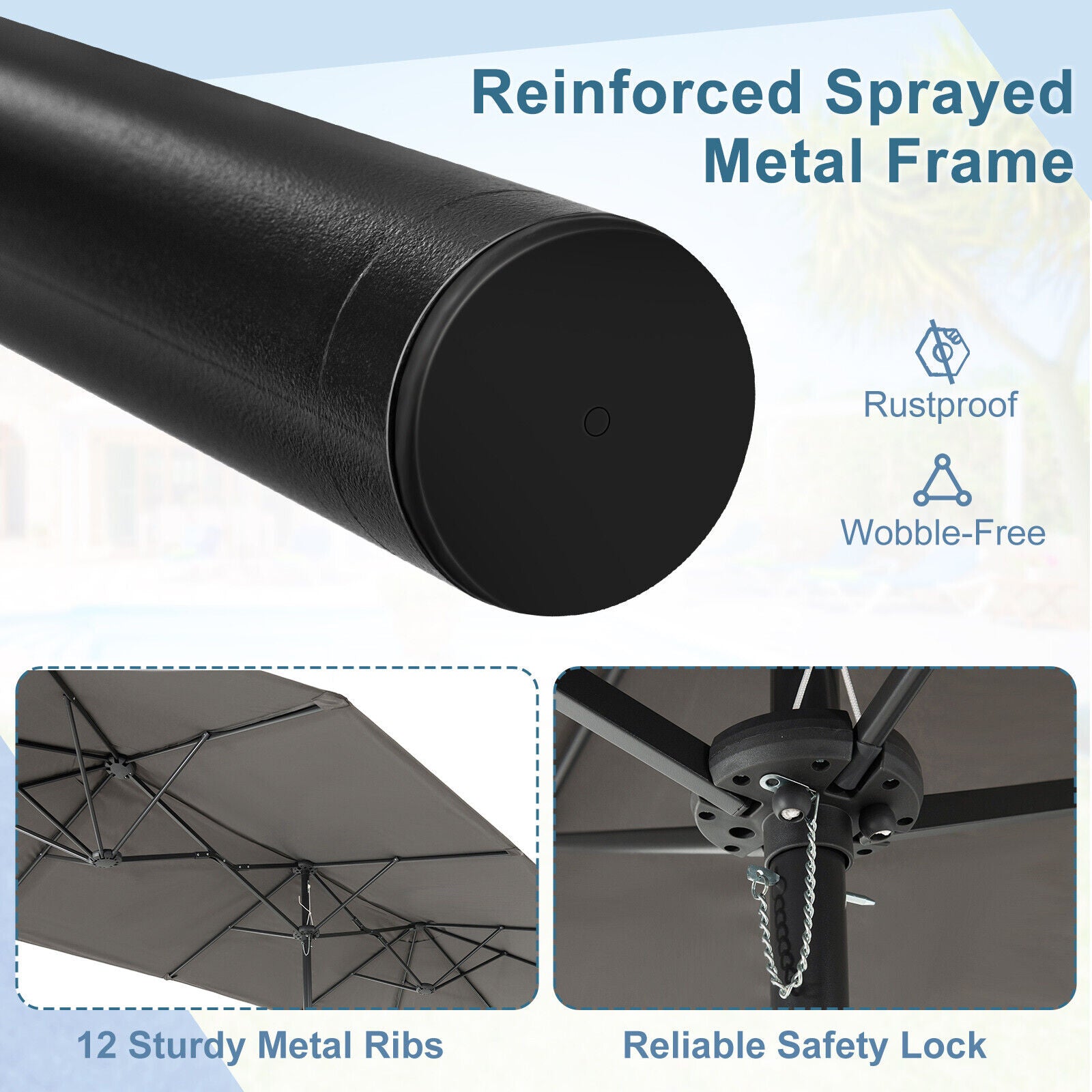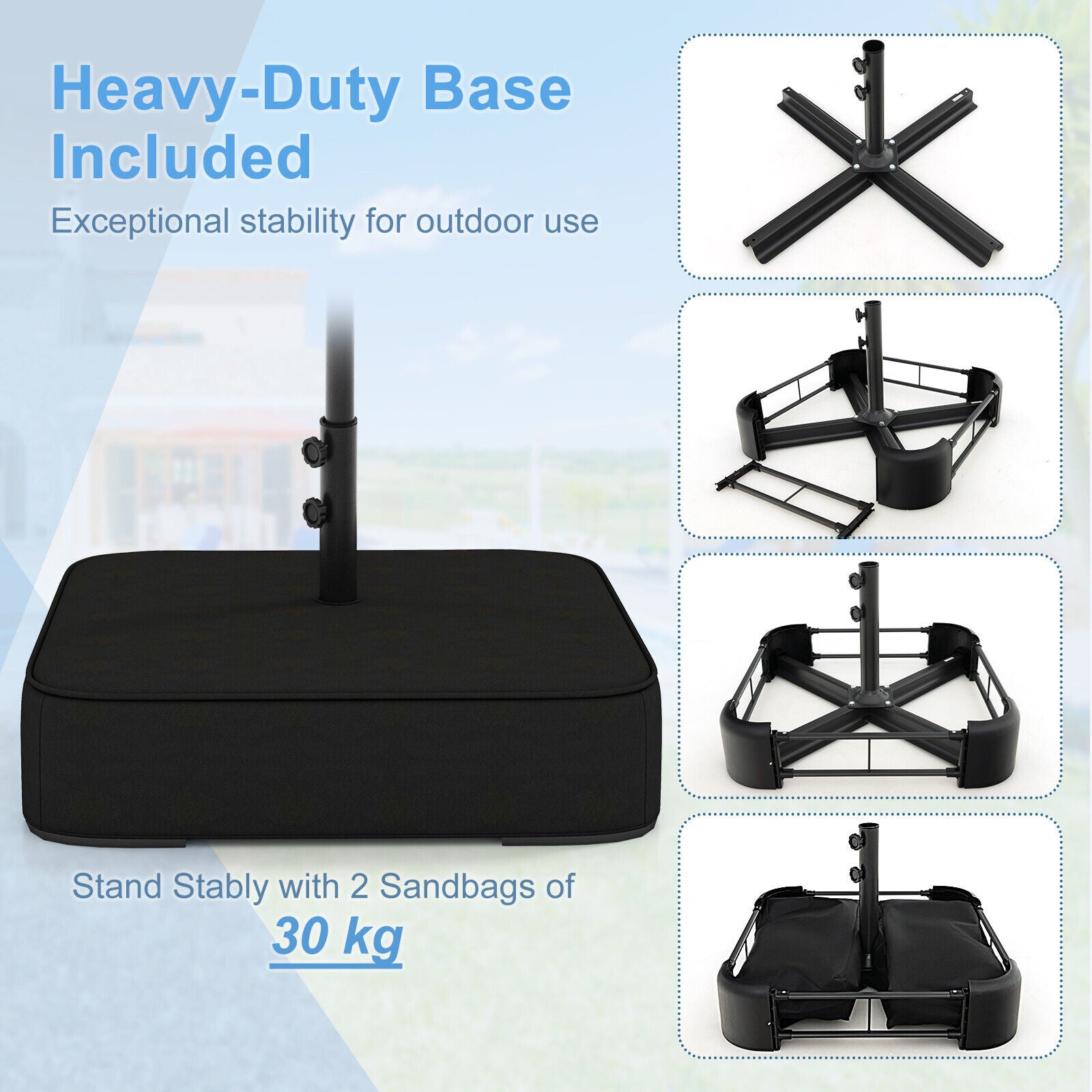 4M Outdoor Table Parasol Patio Umbrella Double-Sided Market Umbrella with Base