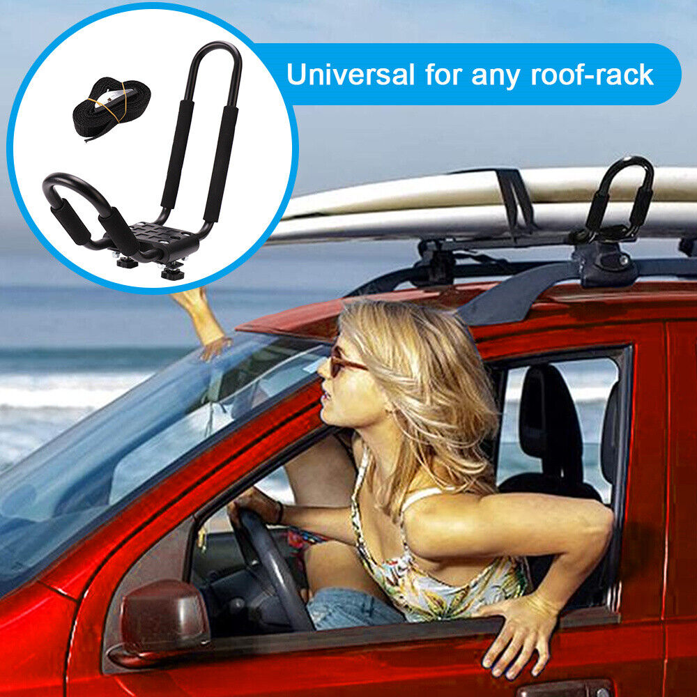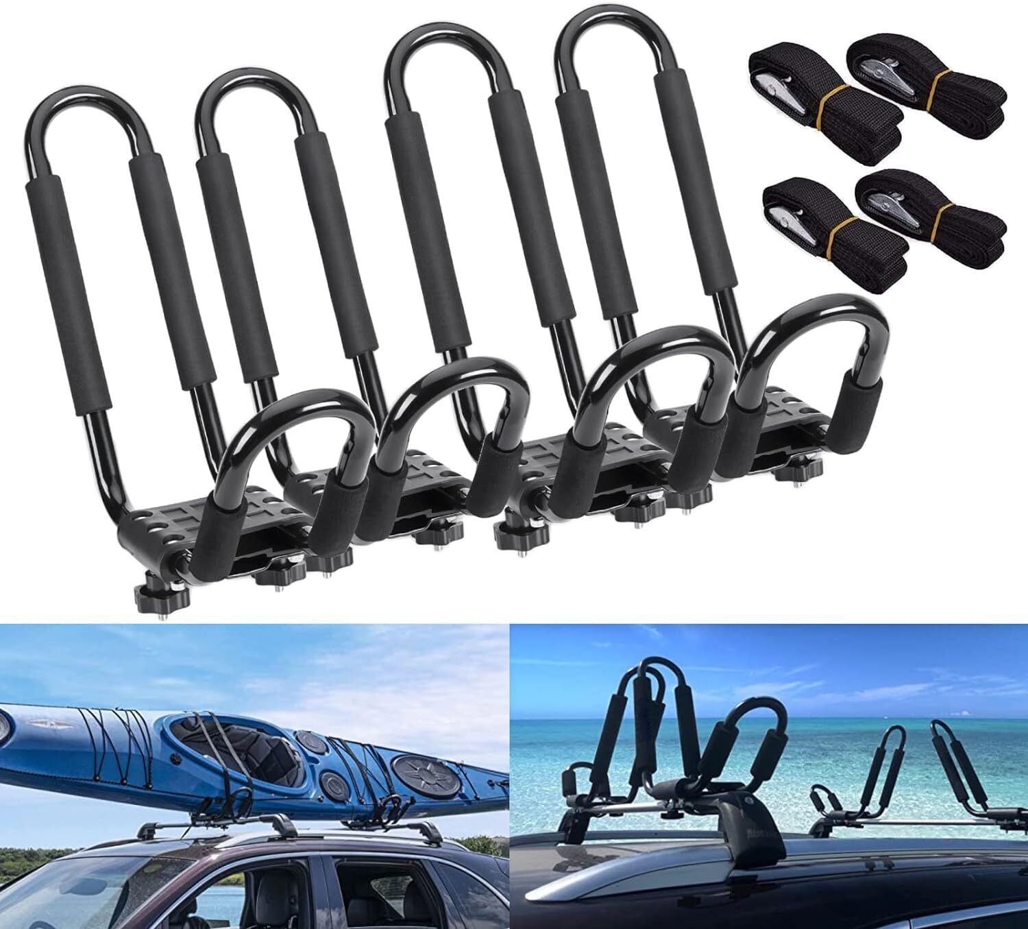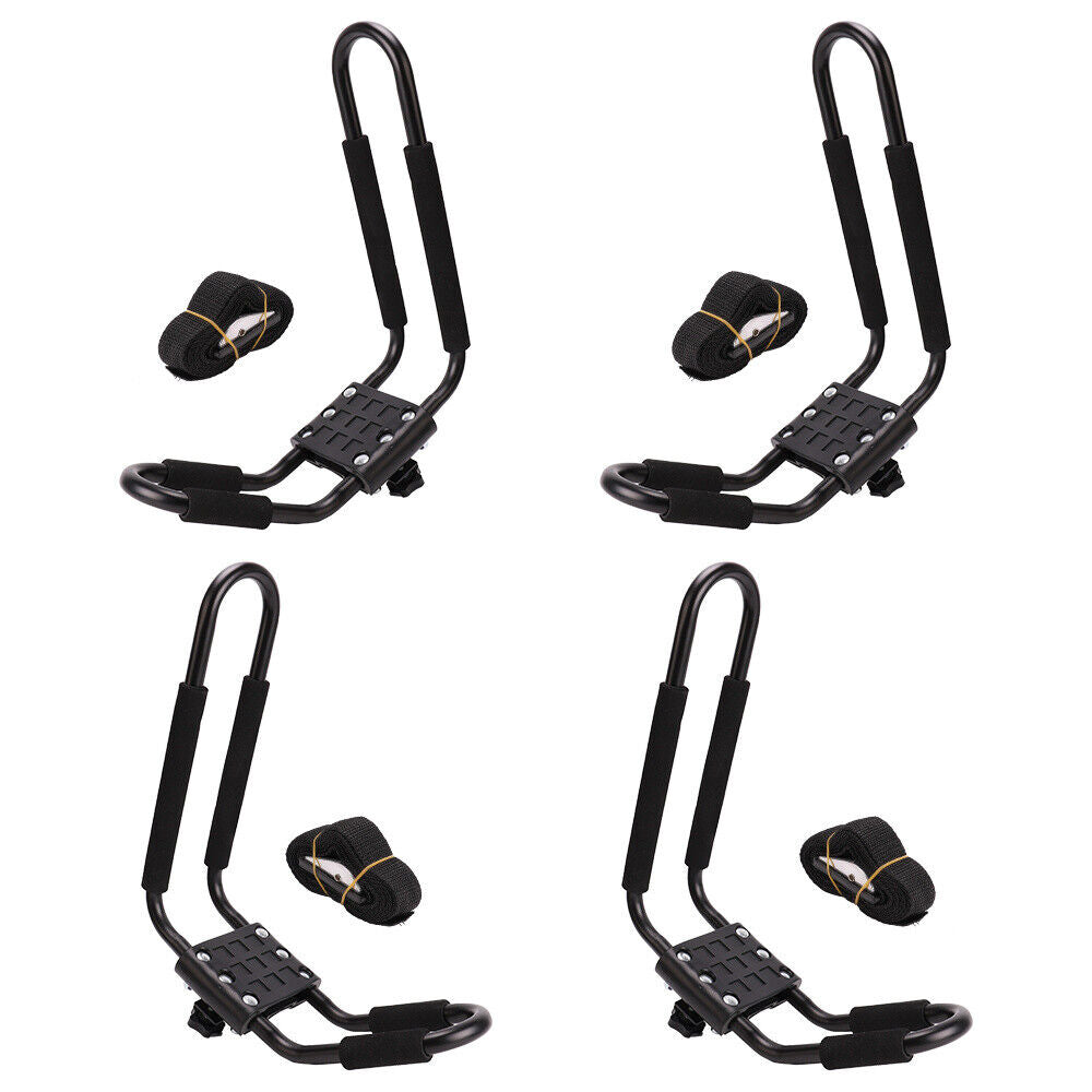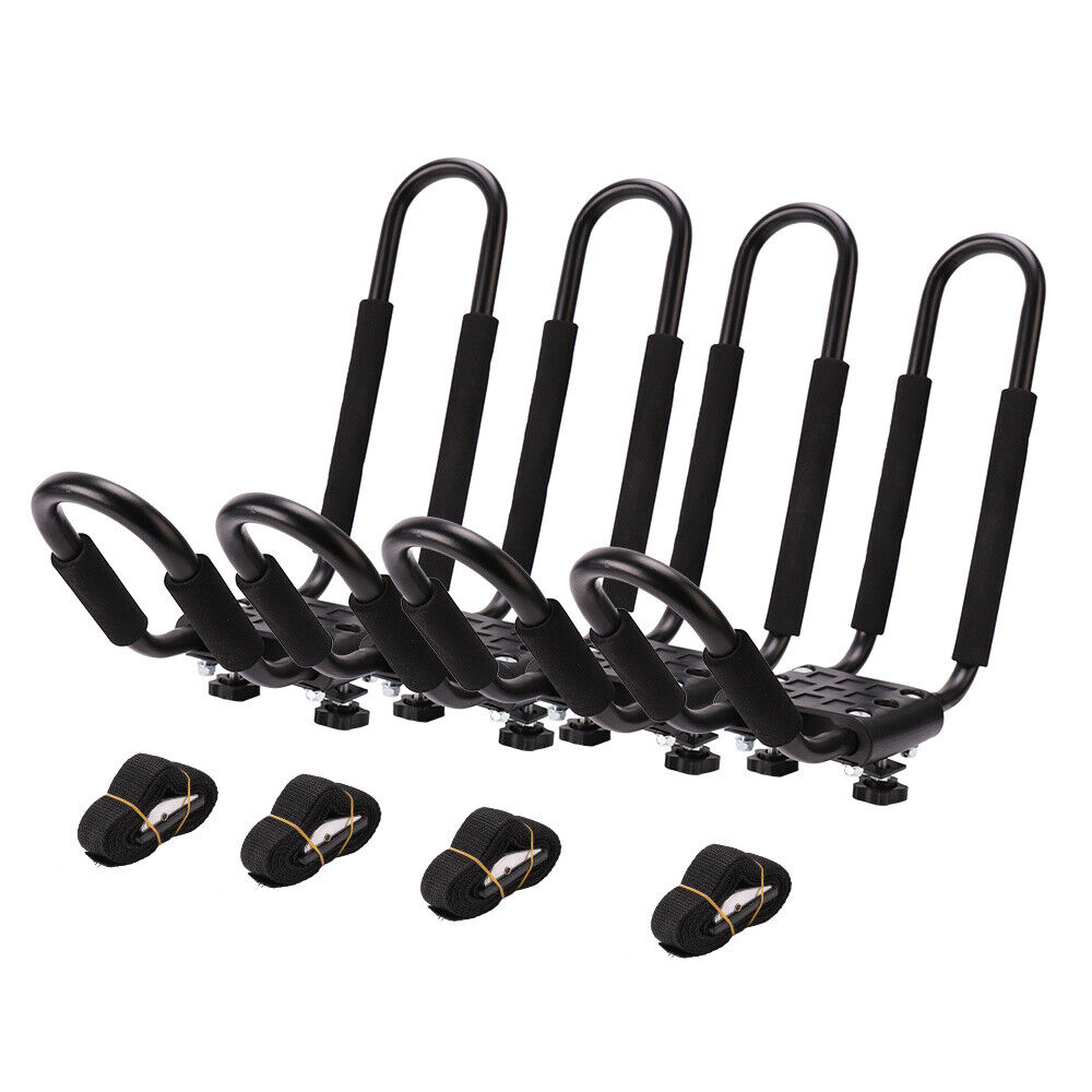 4PC Adjustable J Bars Car Roof Rack Kayak Canoe Carrier Universal H-Duty & Strap