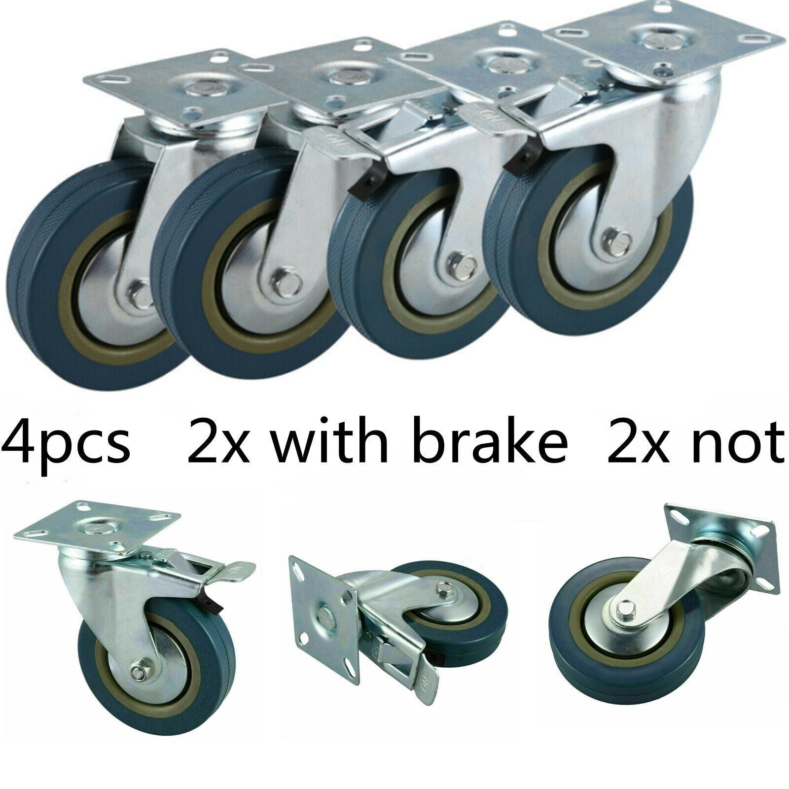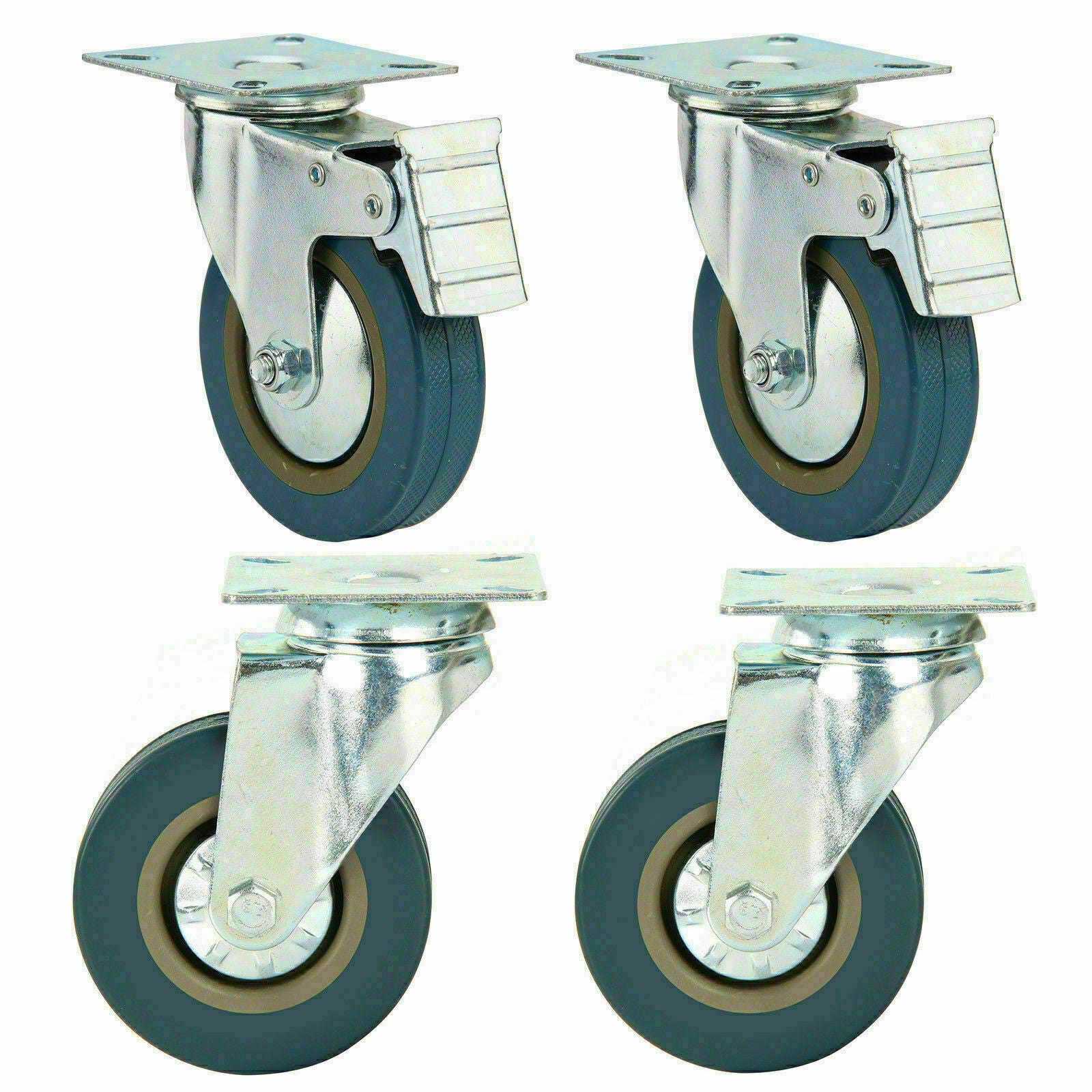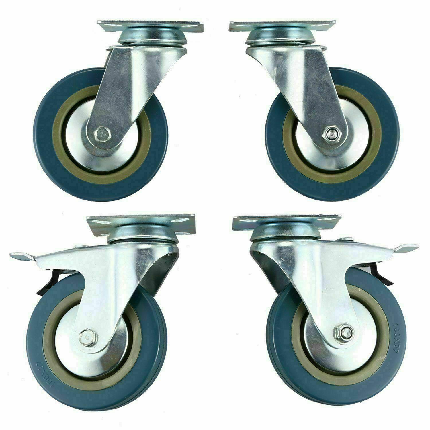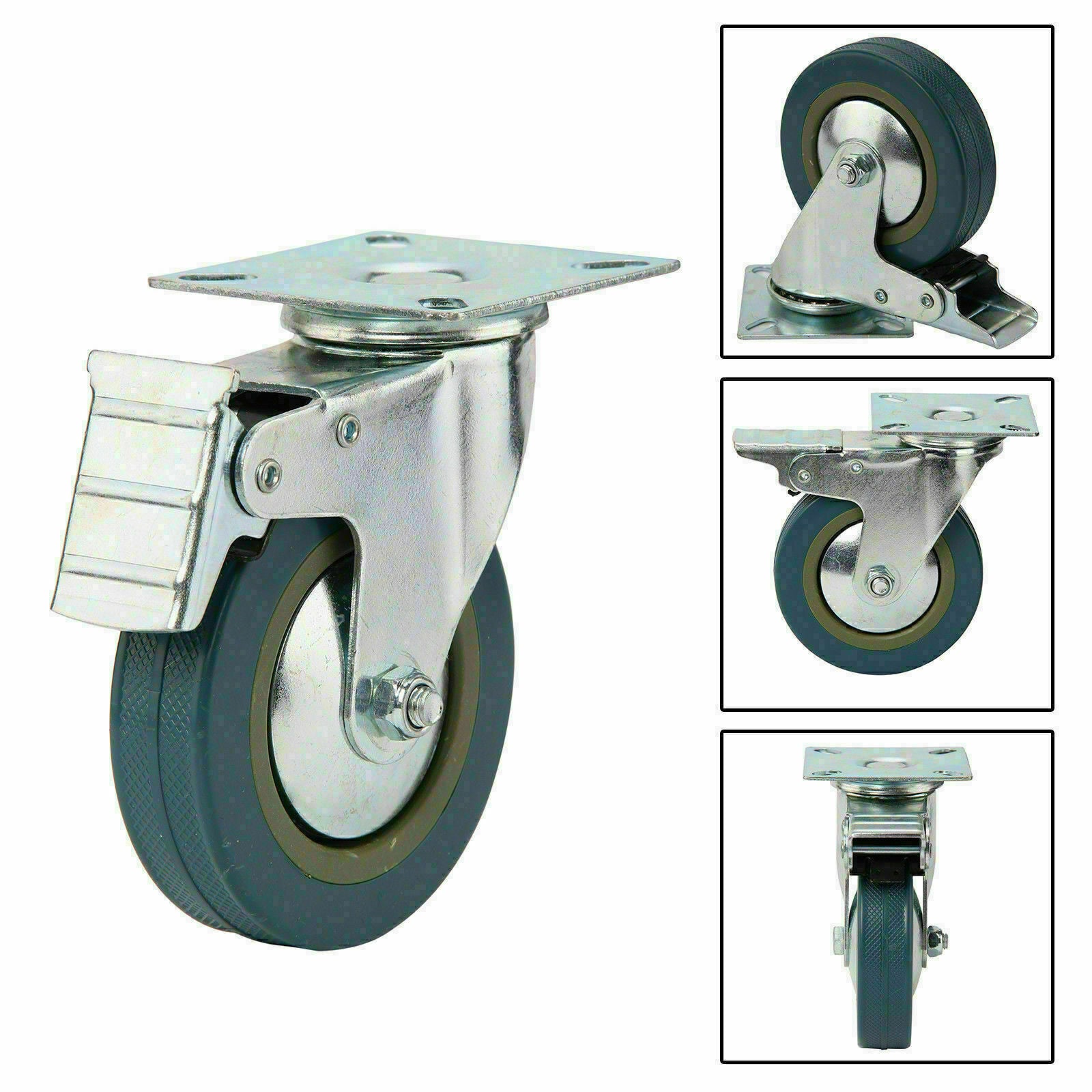4pcs 100mm Heavy Duty Swivel Castor Wheels Trolley Furniture Caster Rubber 600kg
