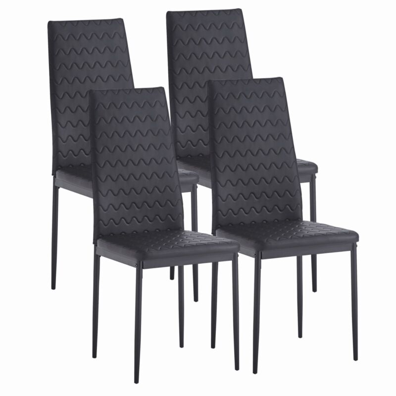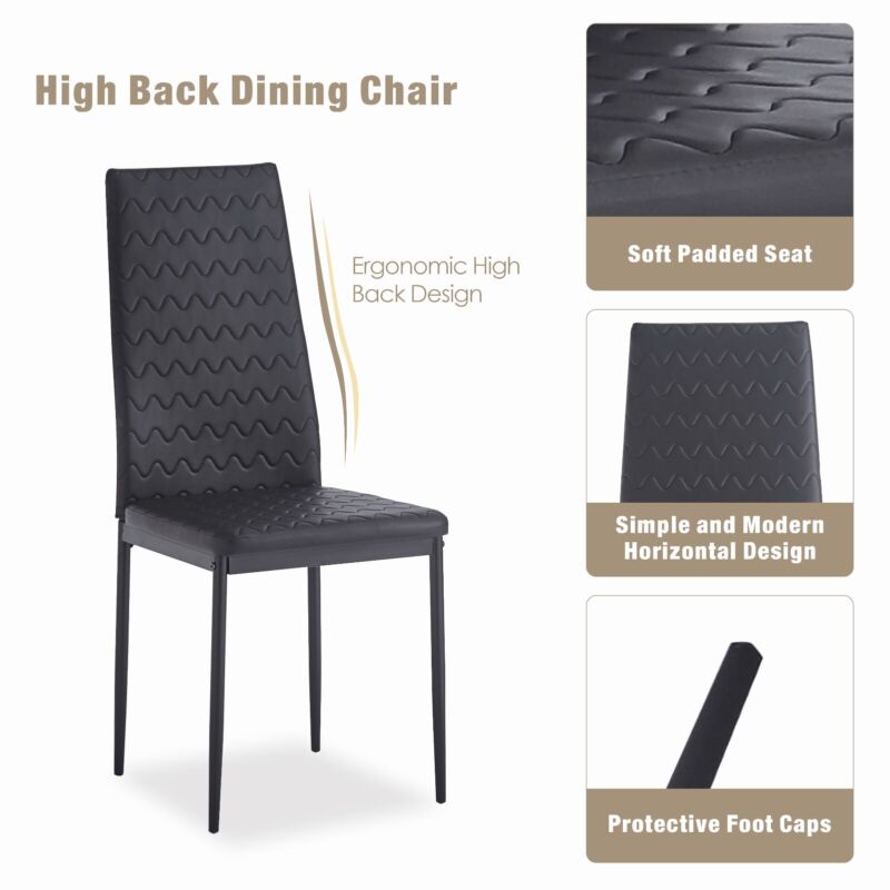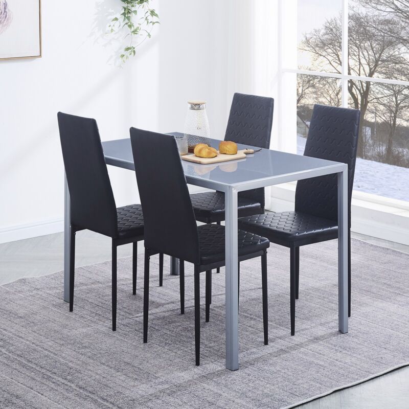 4pcs Black Faux Leather Dining Chairs & Grey Tempered Glass Dining Table Set