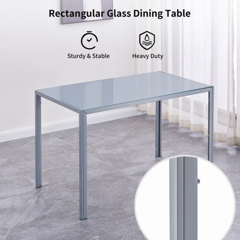 4pcs Black Faux Leather Dining Chairs & Grey Tempered Glass Dining Table Set