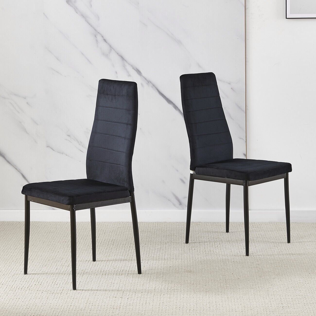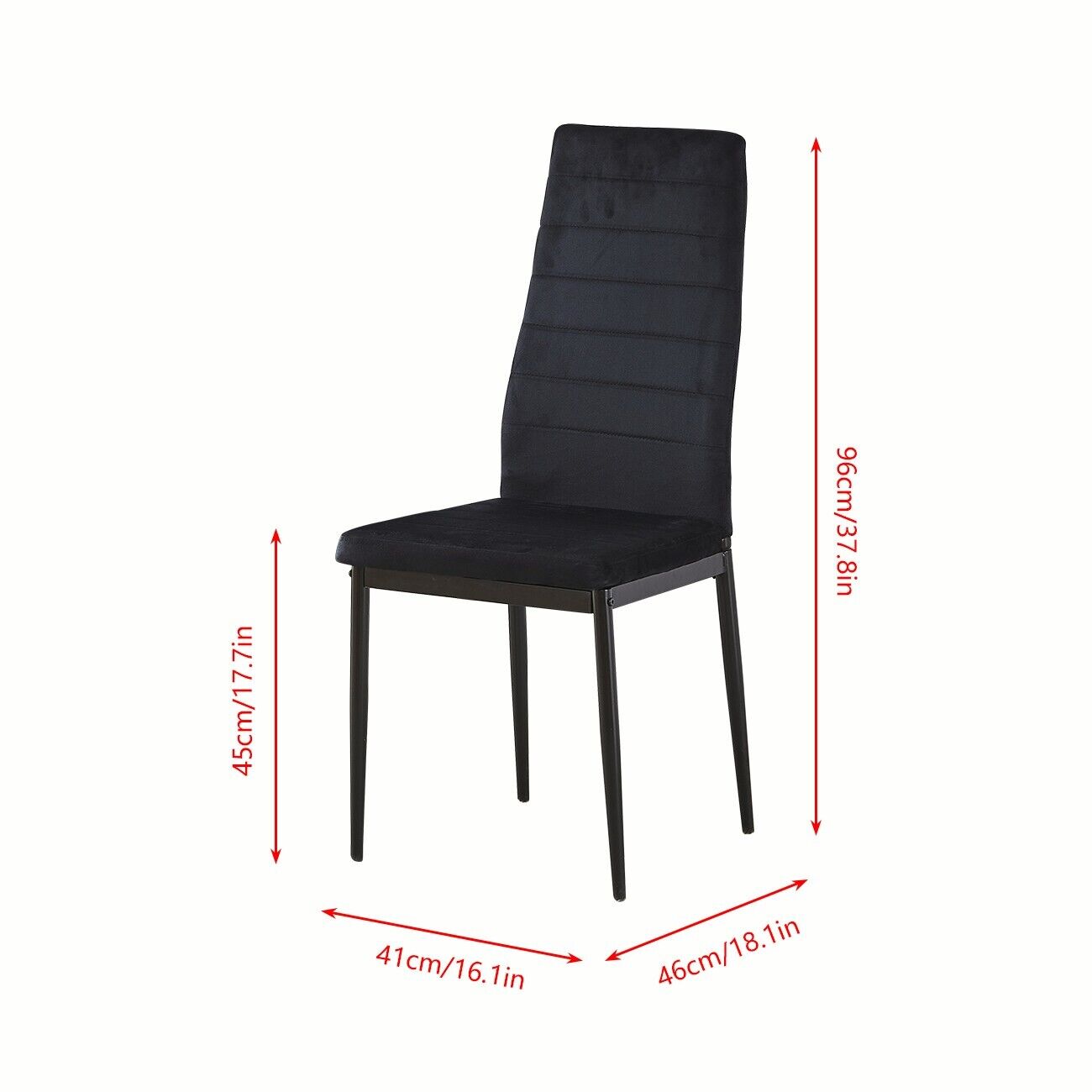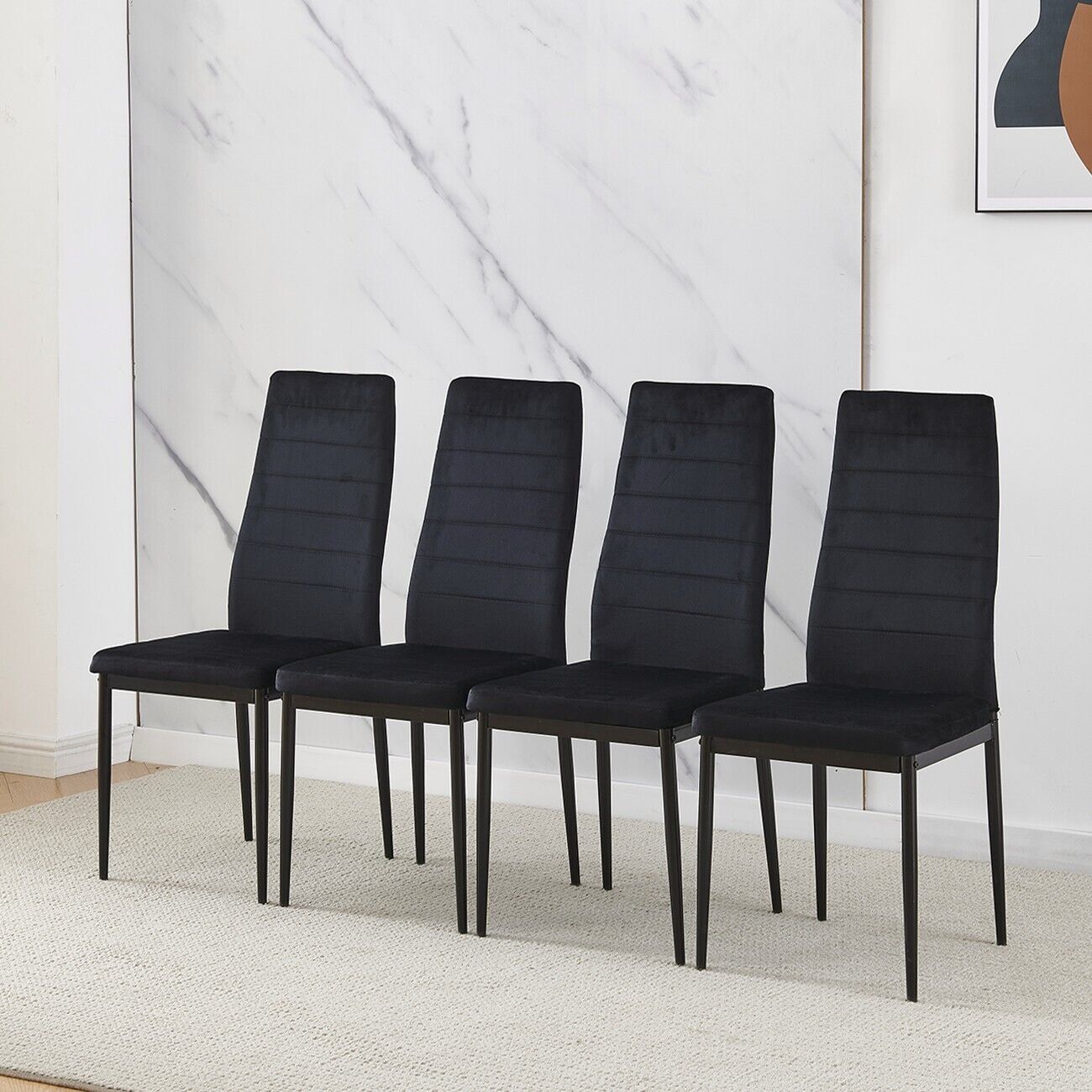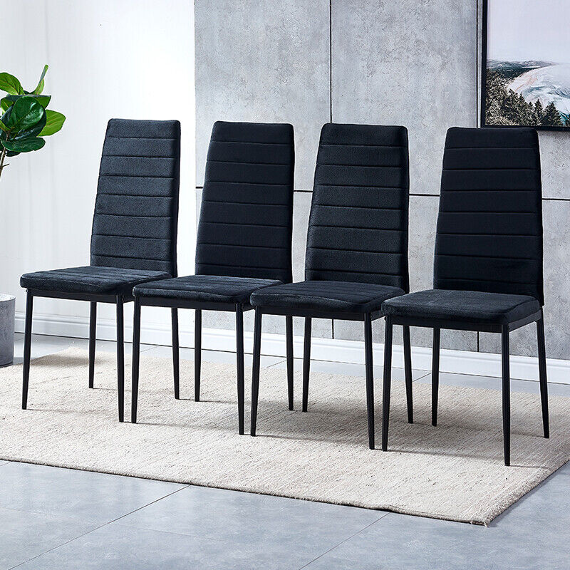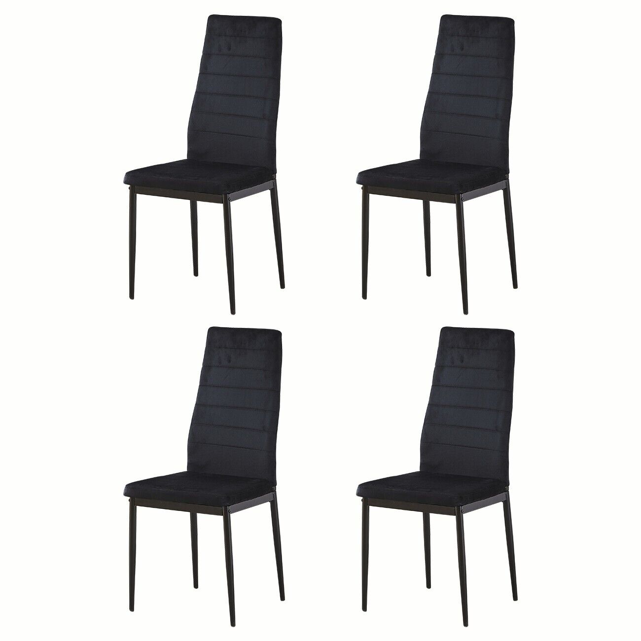 4Pcs Black Velvet Dining Chairs Kitchen Dinning Room Metal Leg Padded Seat Home