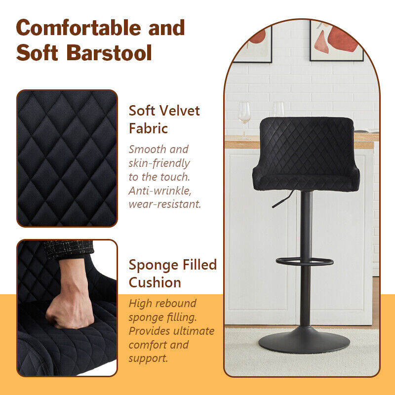 4Pcs Breakfast Bar Stool Velvet Padded Swivel Gas Lift Bar Chair With Metal Base