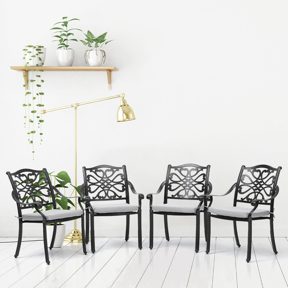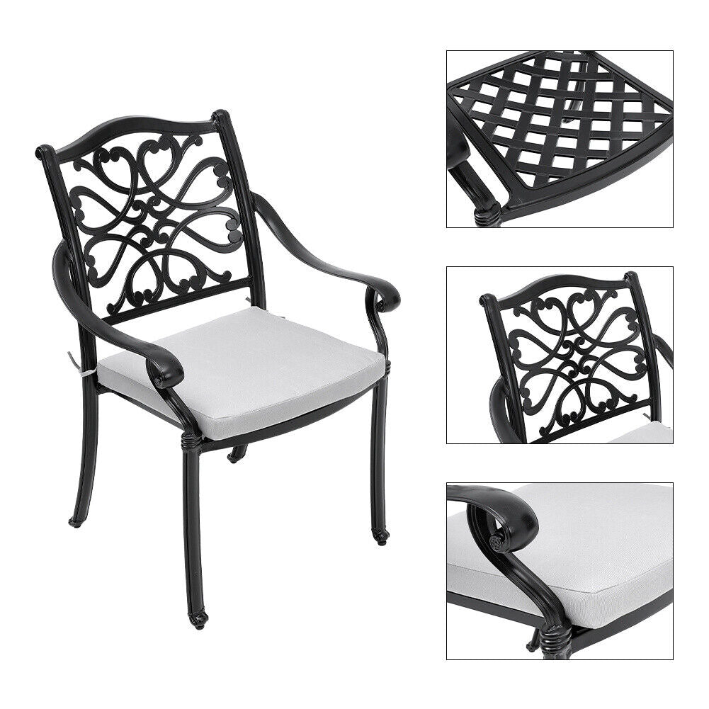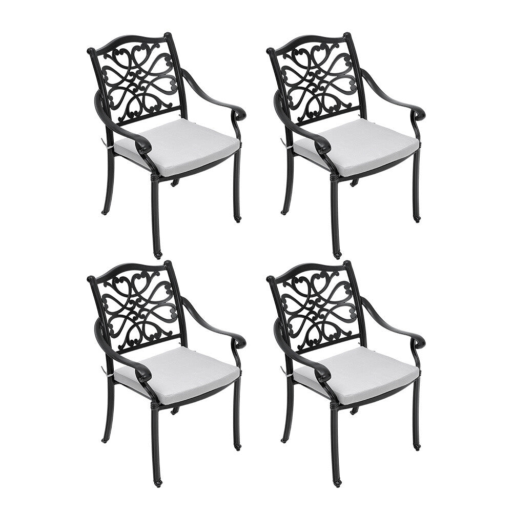 4Pcs Cast Aluminum Patio Dining Chairs Heavy Duty Metal Bistro Chairs w/ Cushion