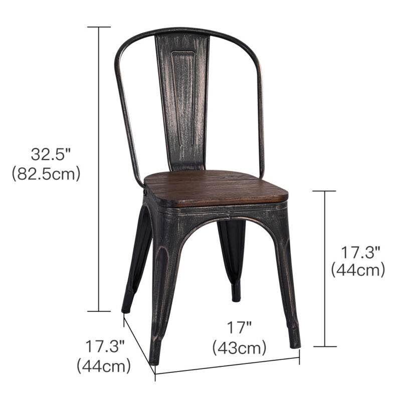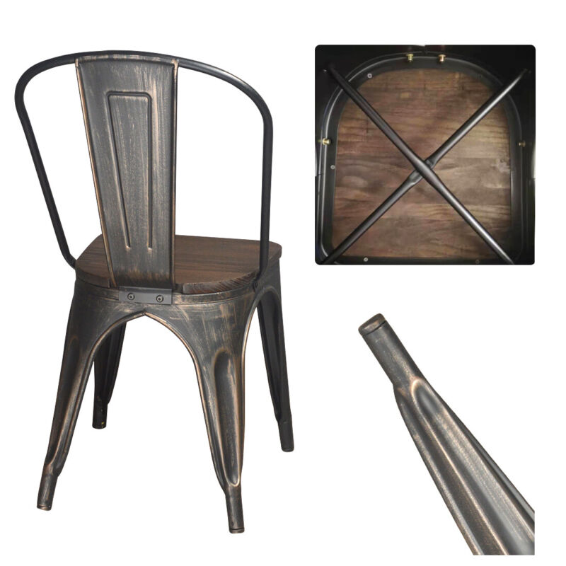 4PCS Dining Chair Stackable Side Metal Industrial Kitchen Chairs Home Black Gold