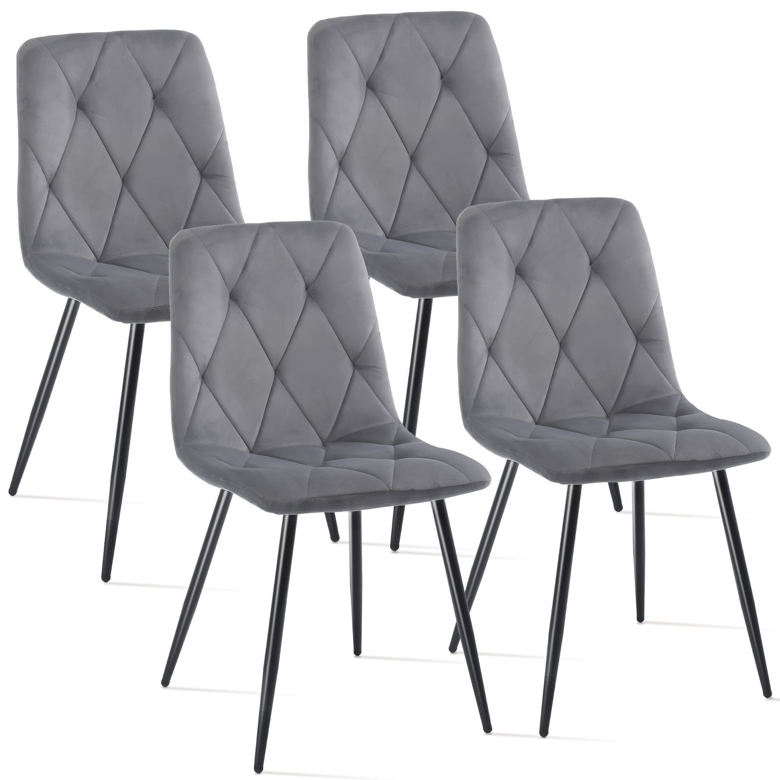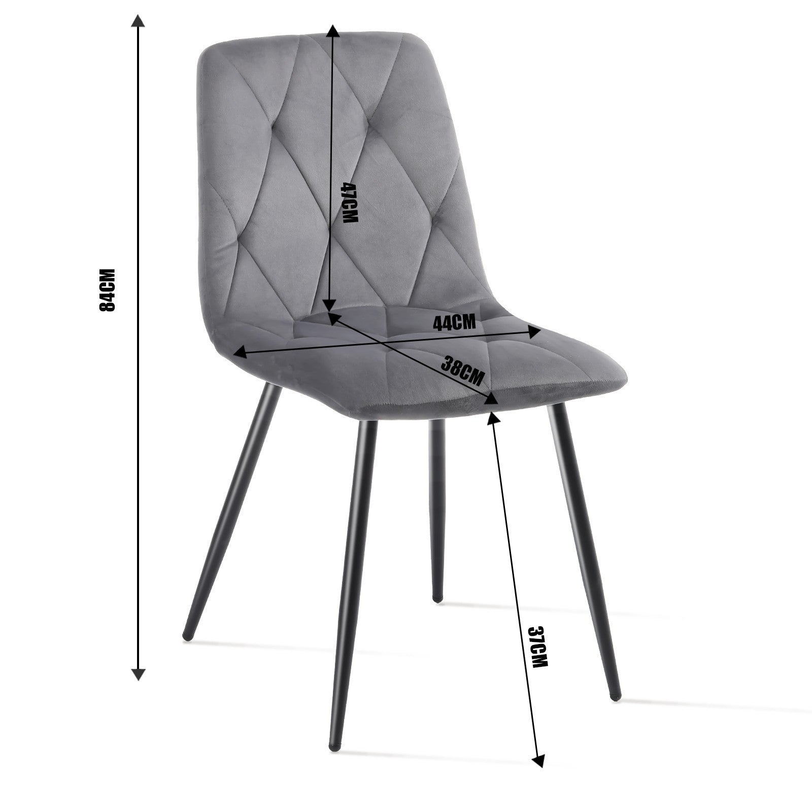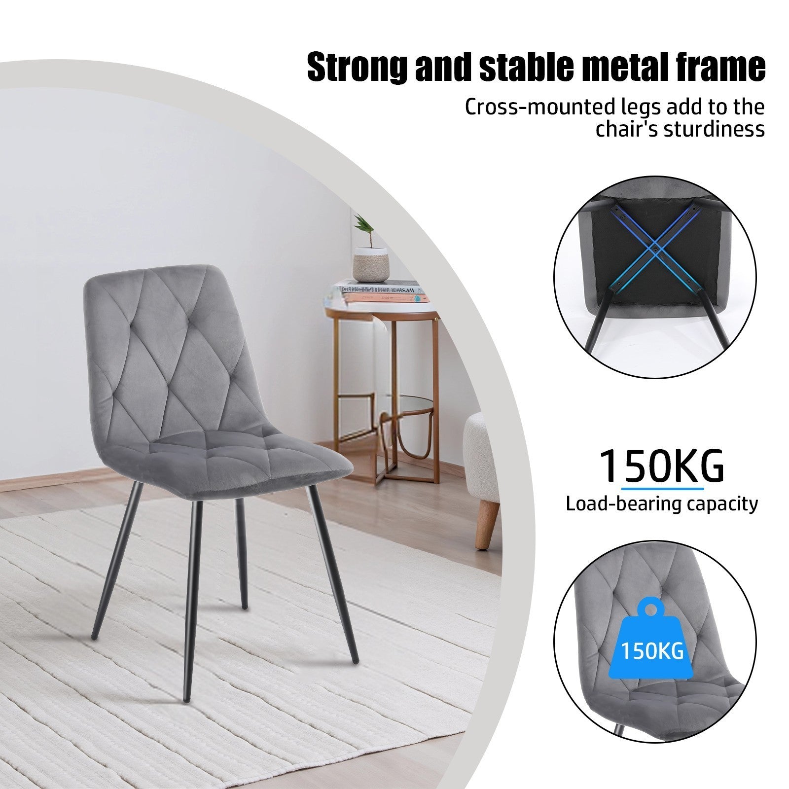 4PCS Dining Chairs Set Velvet Faux Suede Leather Padded Seat Metal Leg Grey UK